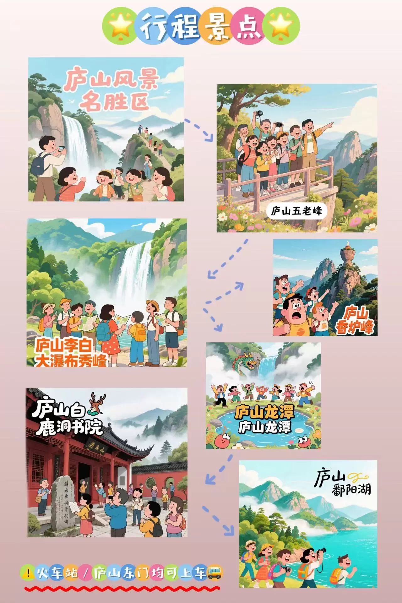 庐山风景名胜区一日游【游玩早结束,随时安排车,送火车站庐山东门,秀峰白鹿洞书院一日游】