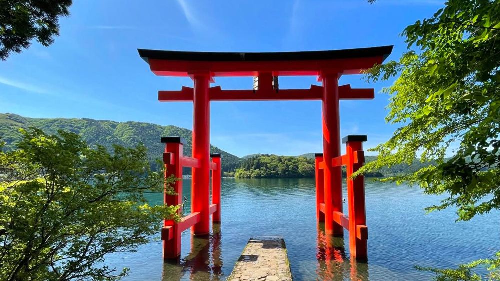 ▲ 箱根神社 & 芦之湖鸟居——神颜上线! 箱根神社是当地人气超高的能量神社,想脱单的宝子别错过,恋爱签超有人气! 朱红色鸟居伫立湖中,画面感拉满,氛围直接拿捏~