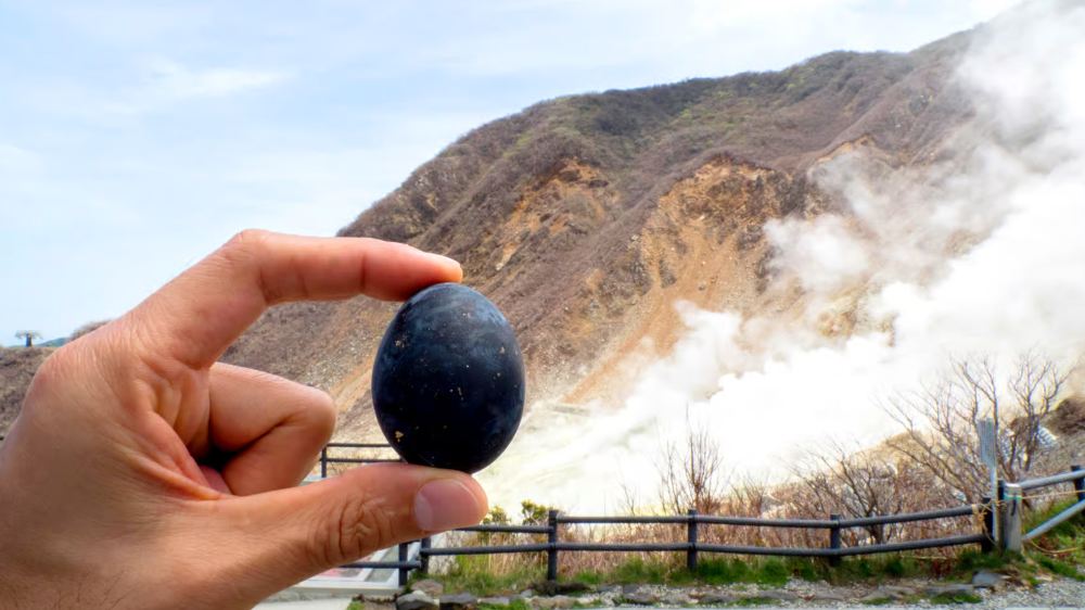 ▲ 大涌谷——地狱厨房的黑蛋传说! 这儿的地狱黑鸡蛋,吃一颗延寿7年!别怕它长得像煤球,剥开蛋黄巨香 火山泥面膜现场就能糊脸!敷完毛孔细到能插花,但小心别被同伴拍黑脸照~