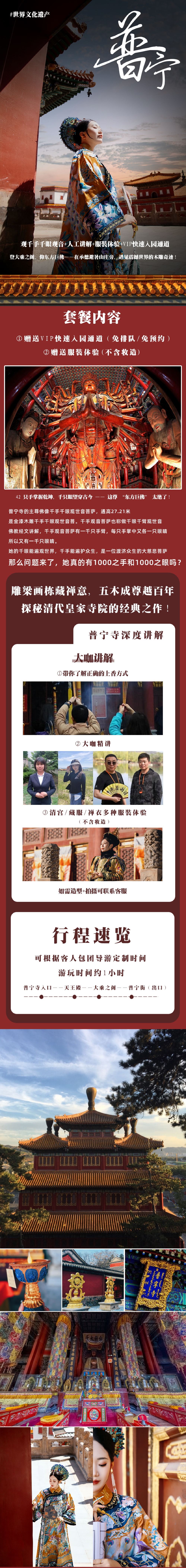 承德普宁寺私家团导游一日游【赠民族服饰体验+入园快速通道】【[精讲服务,深度体验]资深导游,专业深度讲解普宁寺背后的文化】