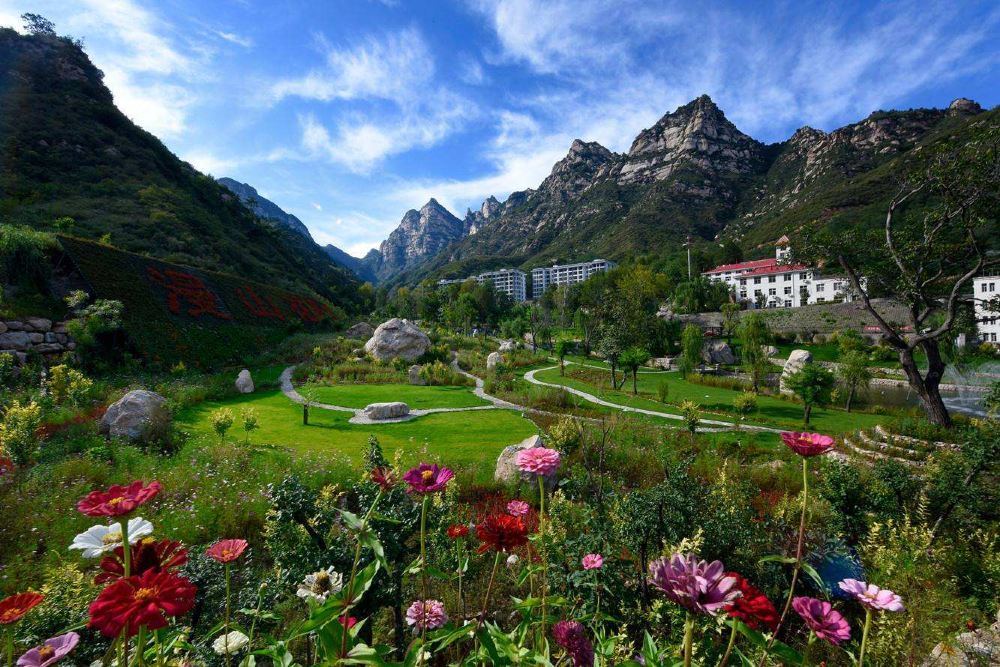 景区内千峰竞秀,万壑争奇,泉水潺潺,景色别致,这里山青水秀、人杰地灵、空气清新,民风淳朴,春日山花烂漫,夏日清凉无暑,秋日层林尽染,冬日冰瀑奇观,美丽的传说和故事更是增添了景区的神秘感和趣味。