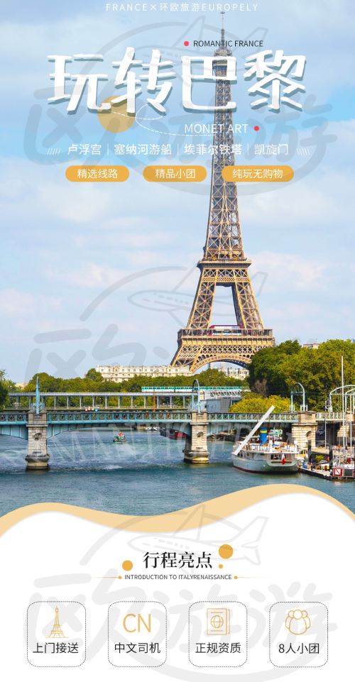 法国巴黎全景一日游卢浮宫塞纳河游船中文8人小团酒店接送含门票【[缤纷景点]巴黎全景一日游】
