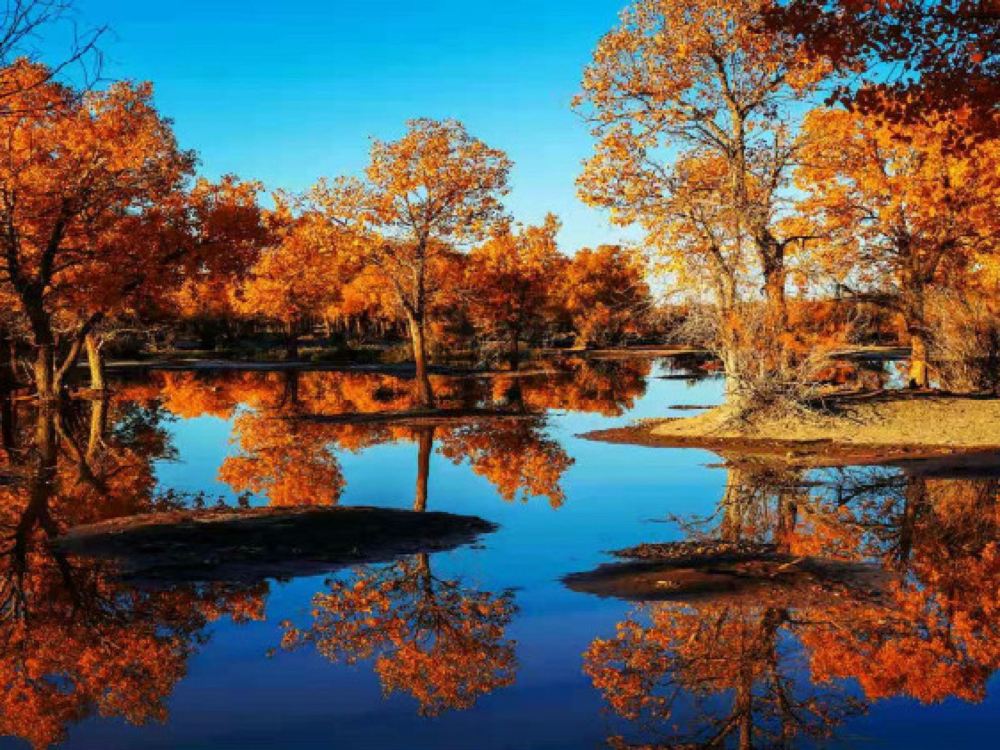▲ 不用刻意找景:一道桥的胡杨绕着木亭,适合拍氛围感人像;四道桥的老树虬枝苍劲,出片自带故事感;七道桥的幼林低矮茂密,能蹲拍“穿梭金色隧道”的画面,随手框都是壁纸。