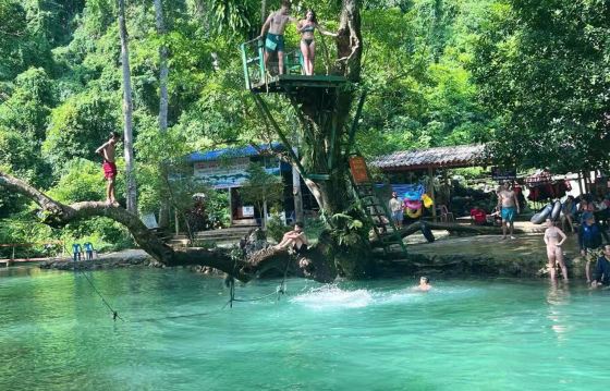 ▲ 前往蓝色泻湖1号,湖水清澈见底,碧蓝如宝石,跃入水中,尽情畅游,或在湖边小憩,亦可坐上秋千享受宁静时光。