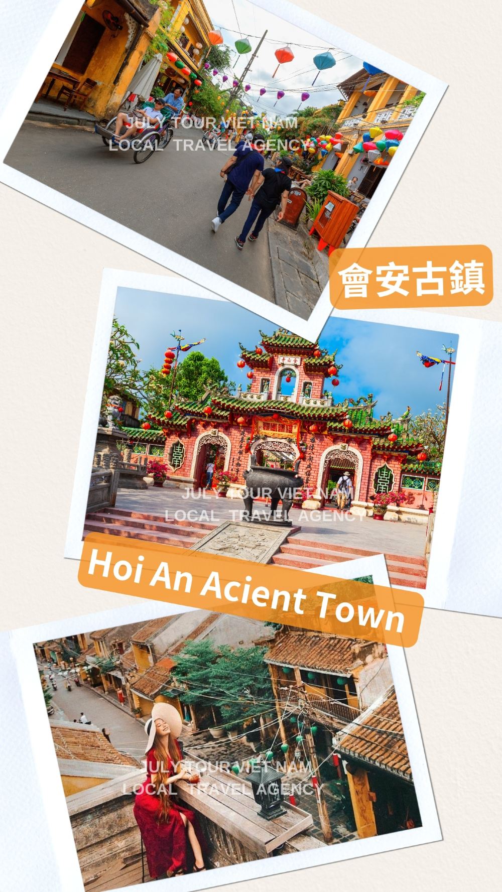 - 18:00: 出发前往会安古城。古镇里享用晚餐,品尝许多独特的当地菜肴,如 高楼面、水饺、包子、白玫瑰型饺子等