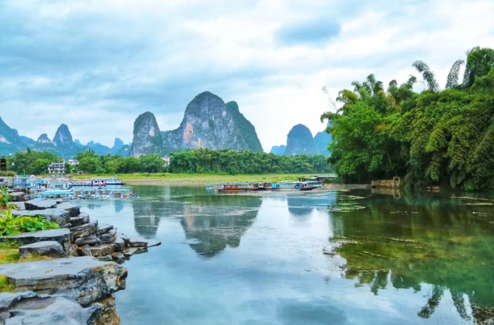 ▲ 兴坪古镇位于阳朔北部漓江江畔,是一座拥有一千七百多年历史的古镇。如今古镇内仍存有古街、古桥、古戏台、古庙等景物。古镇江边有竹筏漂流的码头,可以坐船前往“黄布倒影”景观,