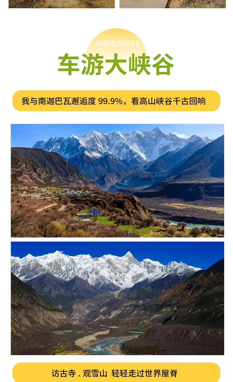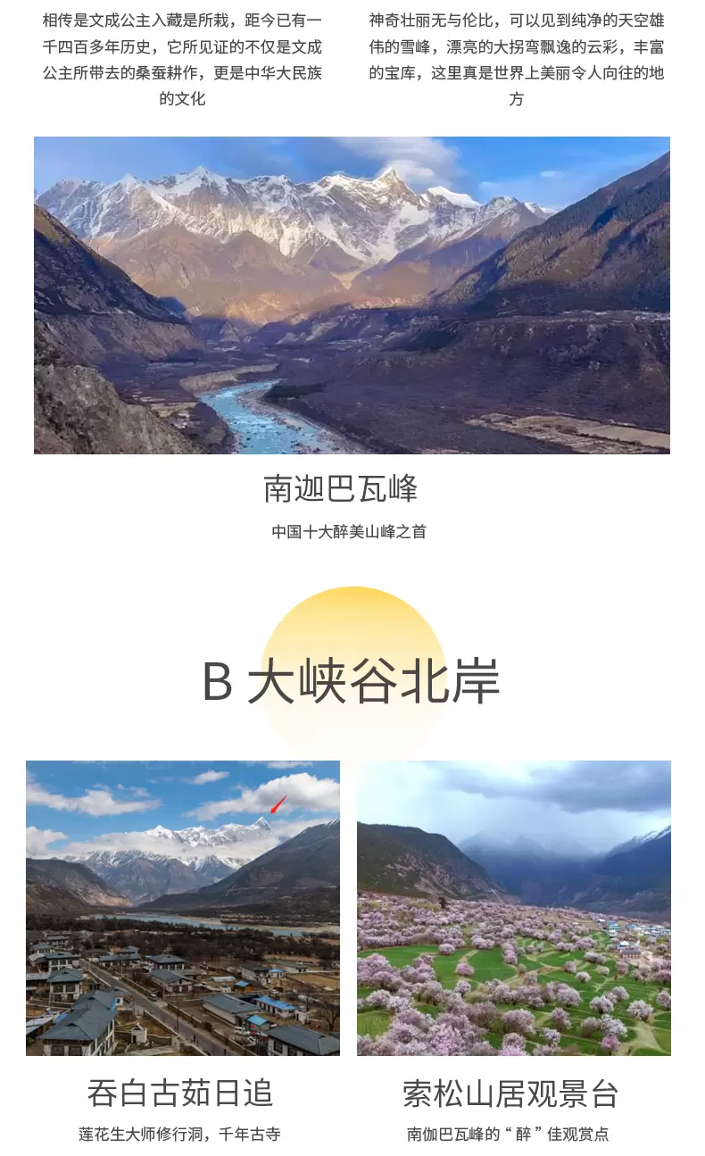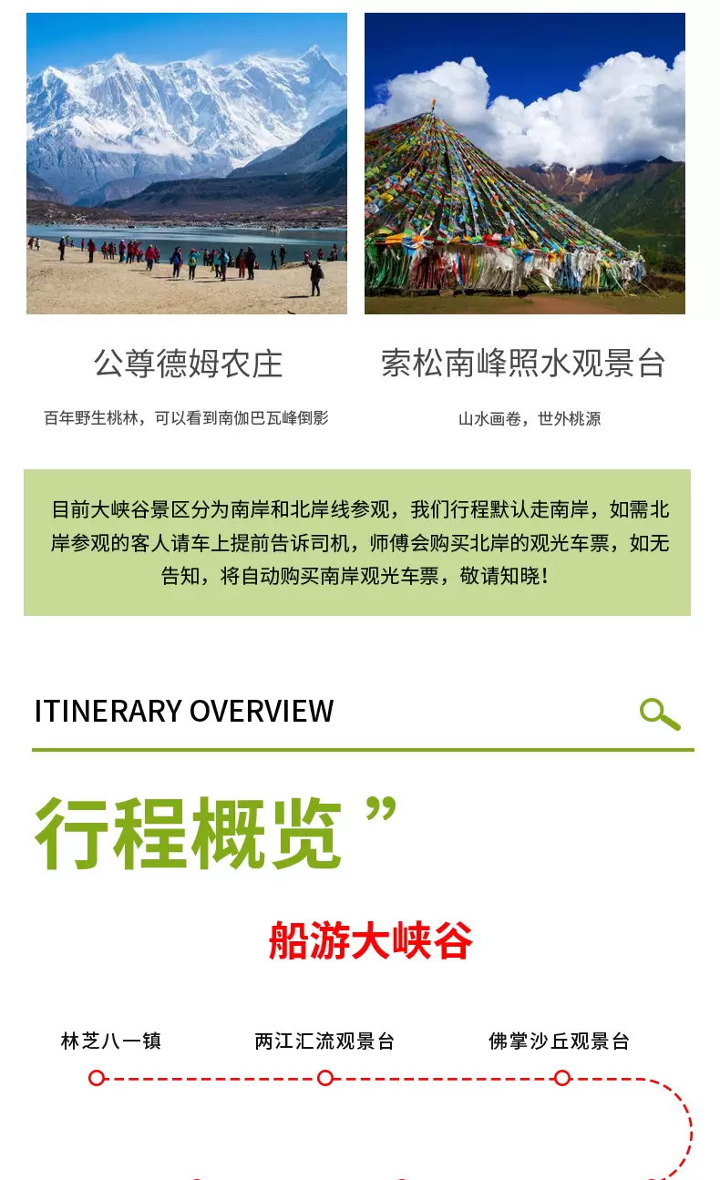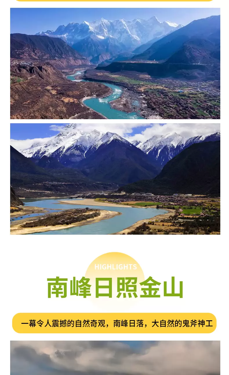 林芝雅鲁藏布大峡谷+南迦巴瓦峰一日游【林芝往返8人团丨车游南岸+北岸索松村无人机航拍/船游/日落线可选】
