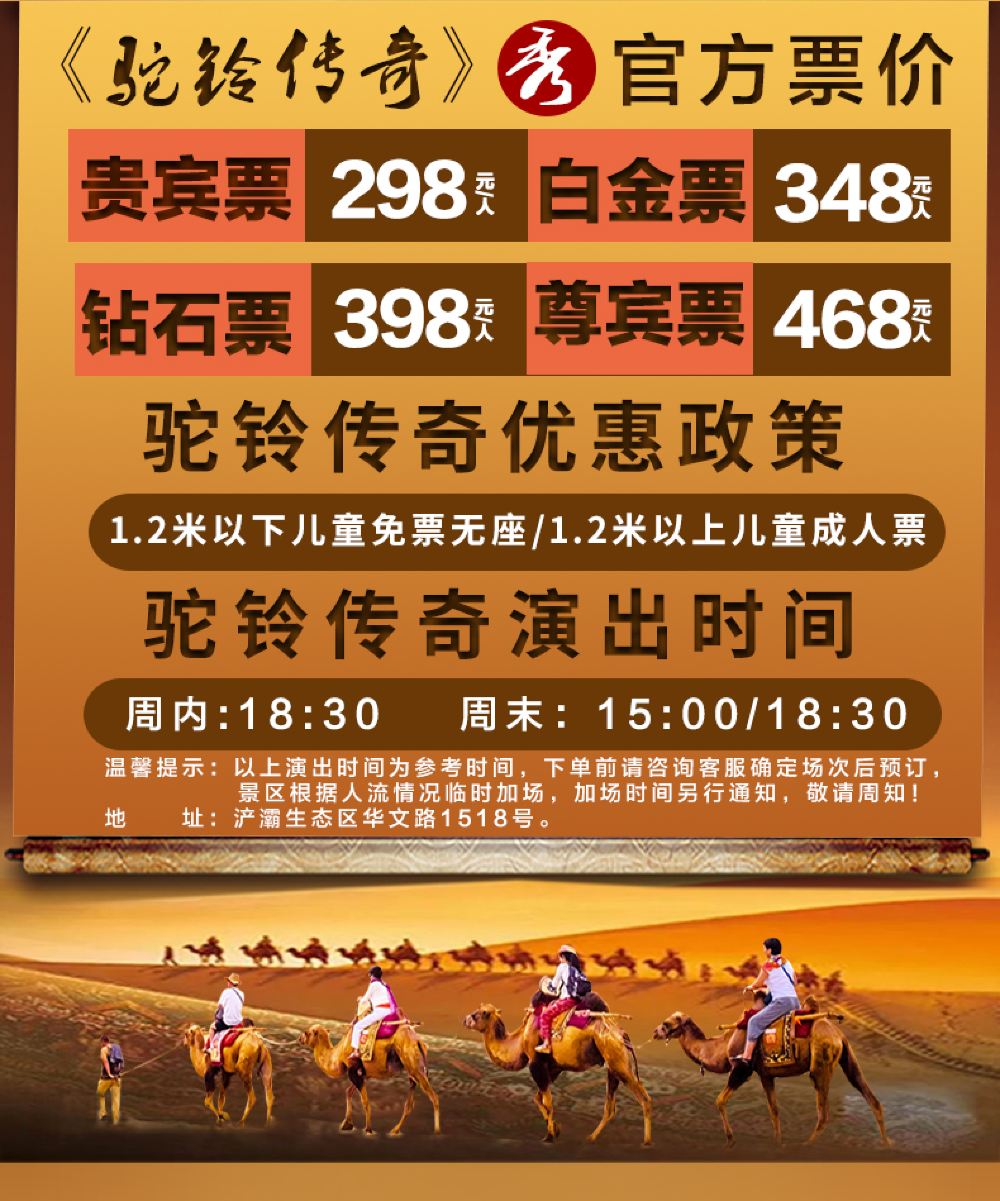 西安《驼铃传奇》秀半日游【会跑的演艺/三环内酒店/专车接送】【[省心出行]三环内专车上门接送,专车直达华夏文旅度假区,让您省心出游。】