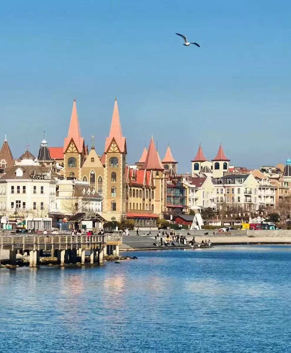 烟台养马岛+海昌渔人码头风景区+烟台山景区+月亮湾+烟台金沙滩海滨公园一日游【果冻海丨孤独的鲸丨可选精品小团】