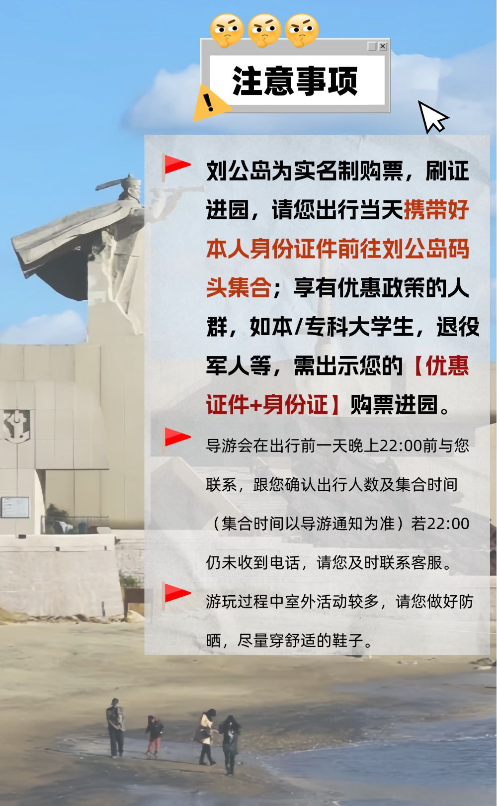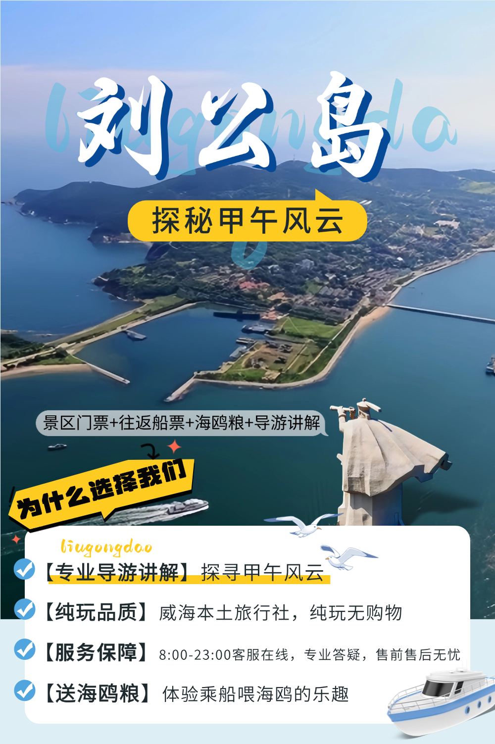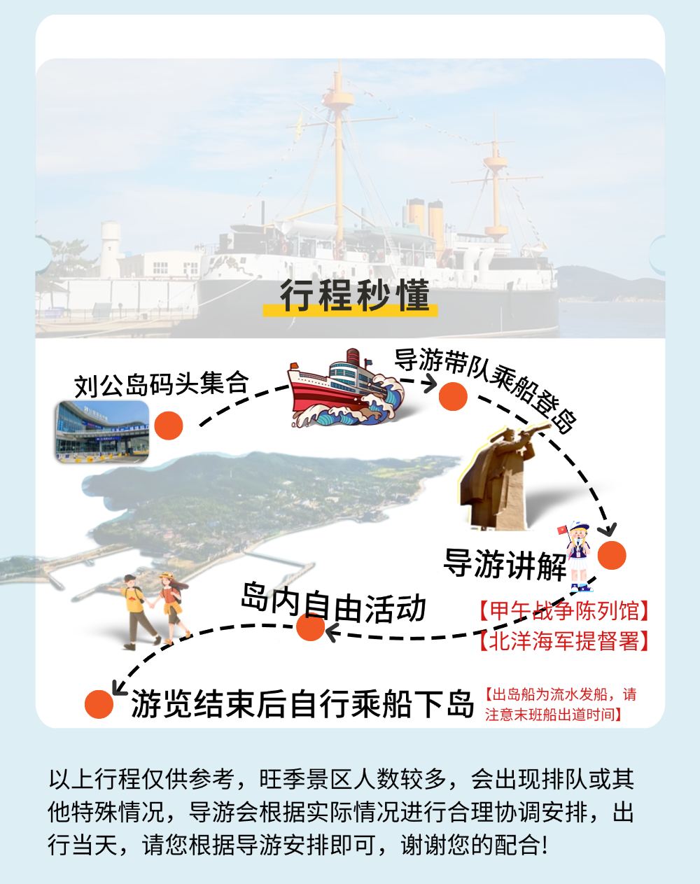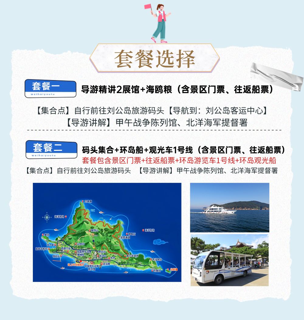 【18成人精讲团+双展馆讲解】刘公岛一日游【【导游专业讲解两个展馆】讲解甲午战争陈列馆,北洋海军提督署(含景区门票、往返船票)】