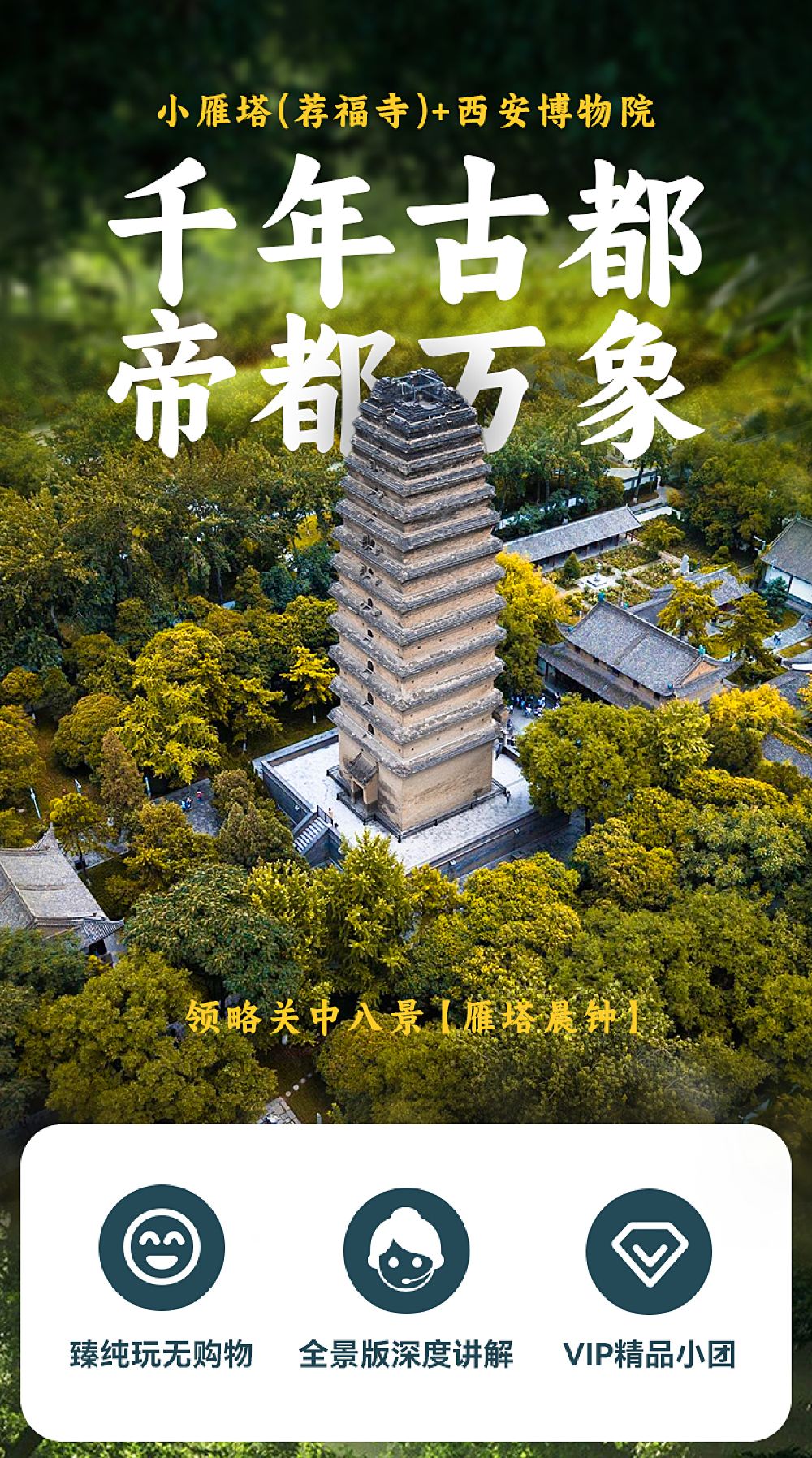 陕西西安小雁塔+西安博物院半日游【纯玩体验+两场可选】【精致小团/全程无购物/无自费】