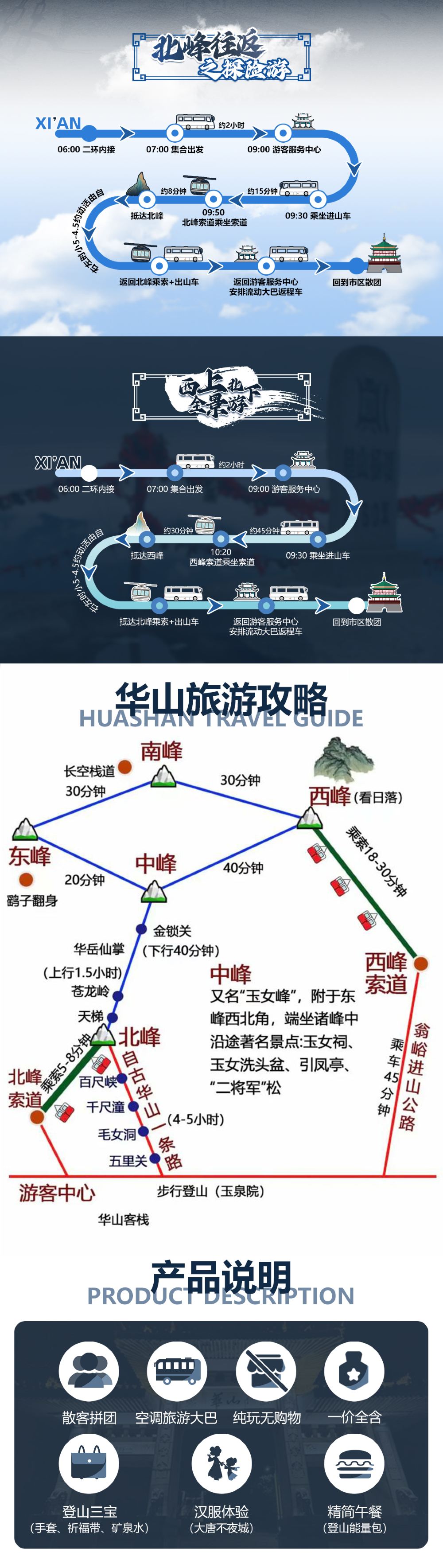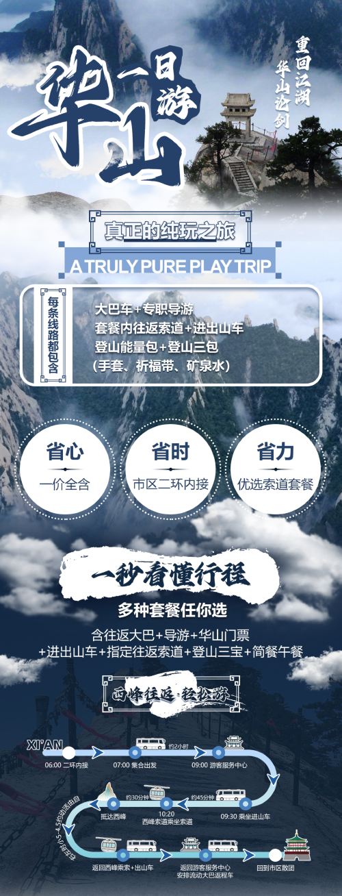 备注:华山分为多条线路前往,请您根据您的体力选择适合自己的方式登山哟!