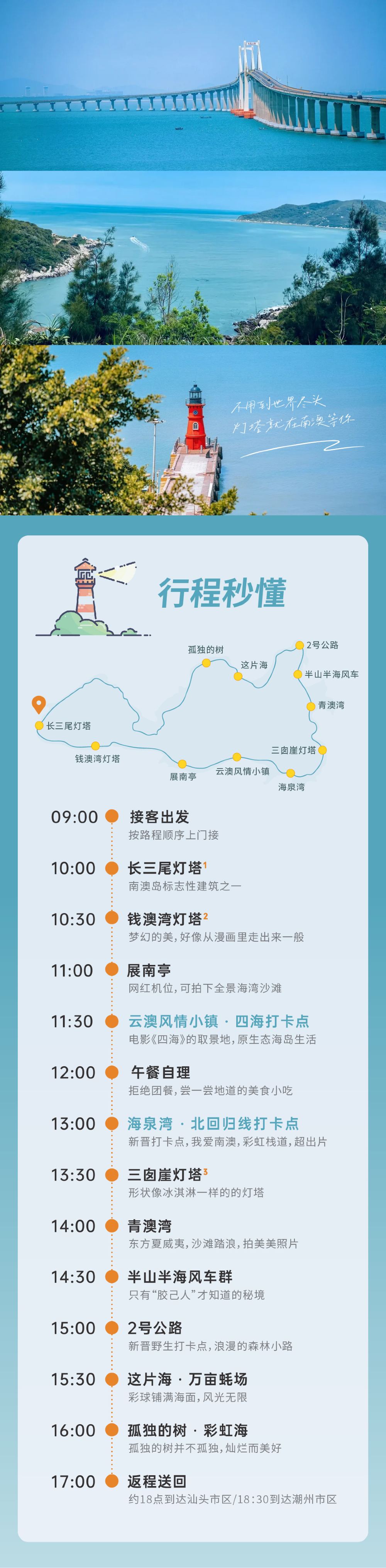 3、路线并非完全固定路线(沿途方便停车的景点也可以停,不喜欢的景点也可以不下车,不走回头路,南澳岛比较大,回头路可能几十公里)