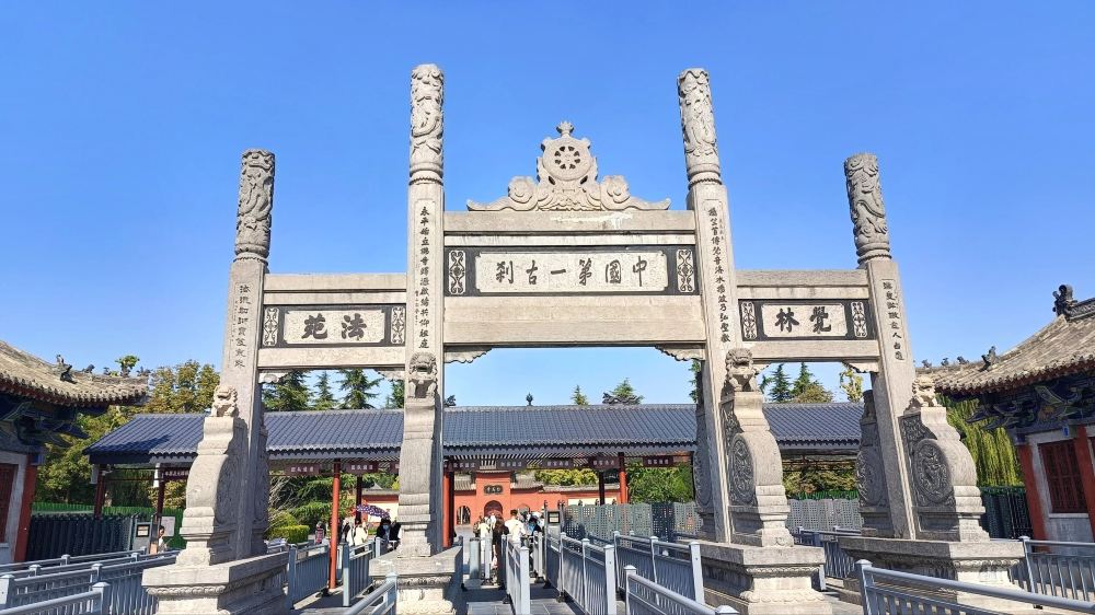 ▲ 白马寺位于河南洛阳洛龙区,是佛教传入中原后的第一座寺院。它创建于东汉永平十一年(公元 68 年),是佛教 “祖庭”“释源”。寺内中轴线上分布着山门、天王殿等建筑,还存有元代夹纻干漆造像等文物。此外,寺内还有中、印、缅、泰四国风格佛殿,文化特色浓郁。