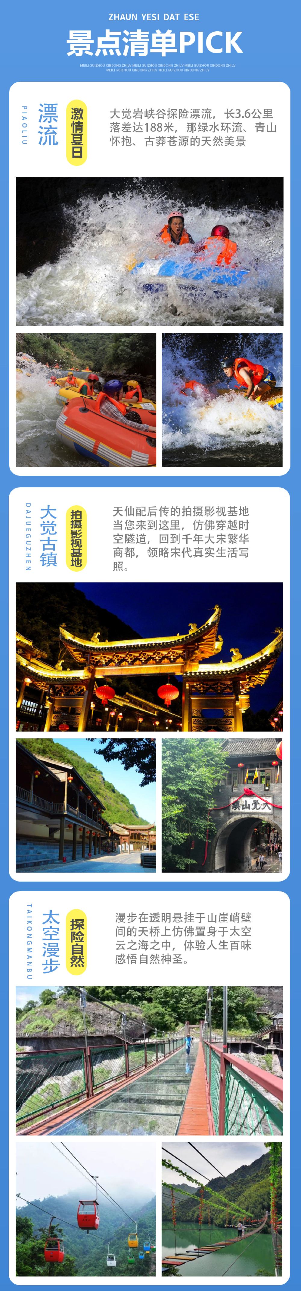 注:当跟团人数少于20人时,会与大觉山漂流跟团游拼团发车!!
