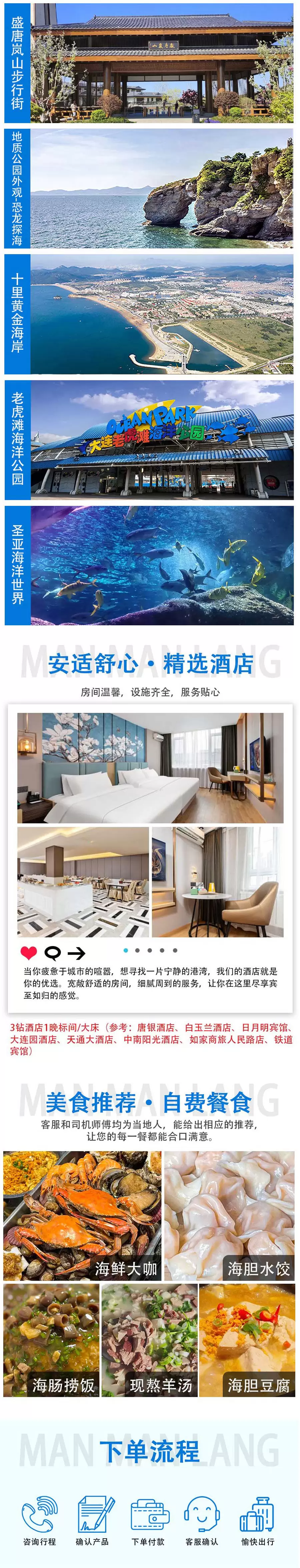 大连棒棰岛+东鸡冠山+十里黄金海岸+老虎滩海洋公园五日游【3钻一家一车|专车接机/站|经典路线逛遍大连|】