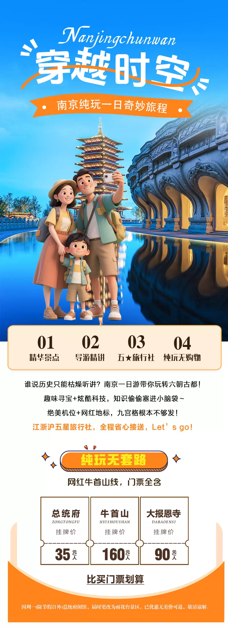 南京总统府+牛首山文化旅游区+侵华日军南京大屠杀遇难同胞纪念馆+大报恩寺遗址景区+中山陵景区一日游【自选套餐】