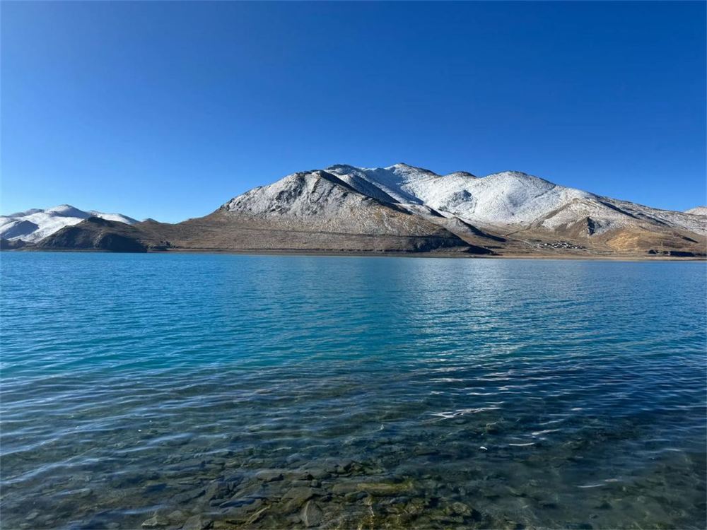 羊卓雍措,简称羊湖,与纳木措、玛旁雍措并称西藏三大圣湖,是喜马拉雅山北麓第一大的内陆湖泊,湖光山色之美,冠绝藏南。羊卓雍错被誉为世界上第一美丽的水。羊卓雍错,“羊”,上面;“卓”,牧场;“雍”,碧玉;“错”湖。连起来就是“上面牧场的碧玉之湖”。