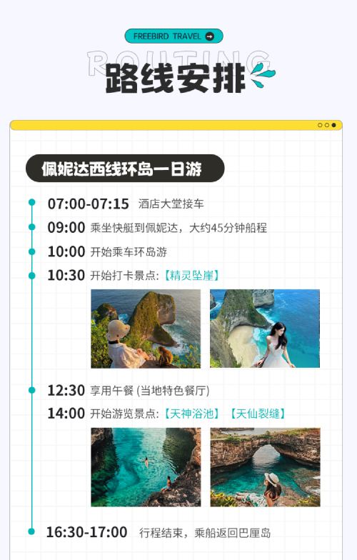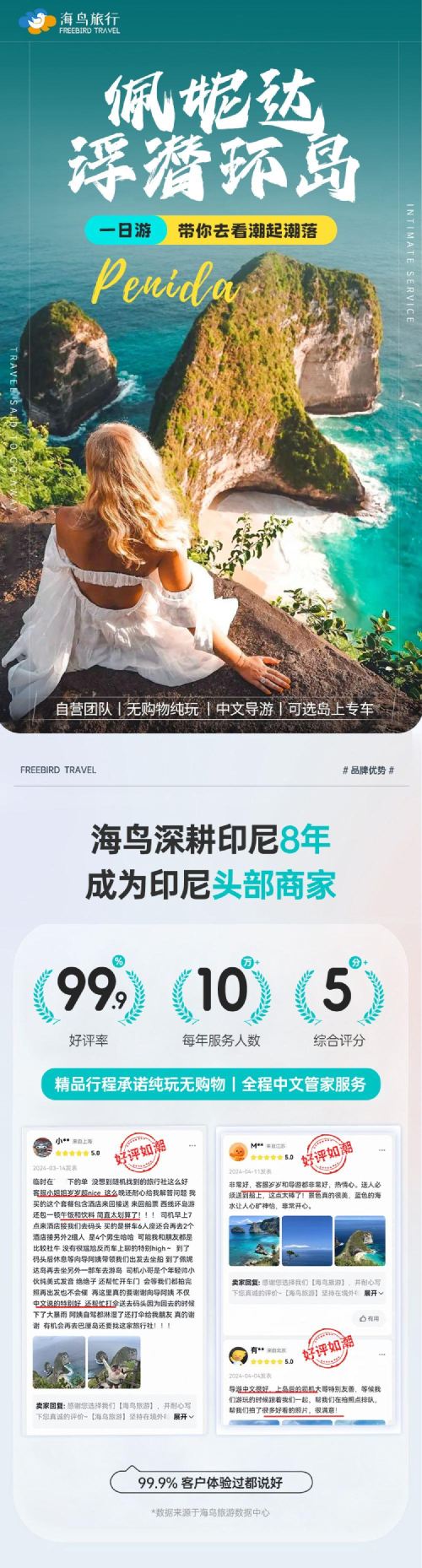 巴厘岛佩妮达岛一日游丨可选中文2-9人小拼团/浮潜/含上岛费【[赠送一次性咬嘴]西线+浮潜送限量1000个,免费提供,先到先得哦~~】