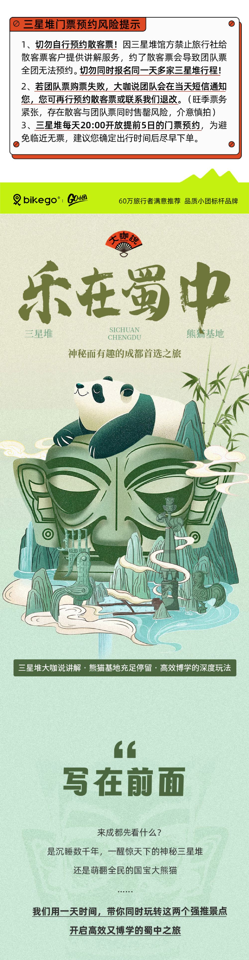 “bikego&大咖说”成都大熊猫基地+三星堆一日游-含门票【【双重体验】不只是逛景点,我们给您一整天有好故事听的人文之旅,为您高效解锁国宝熊猫和神秘古蜀三星堆。】