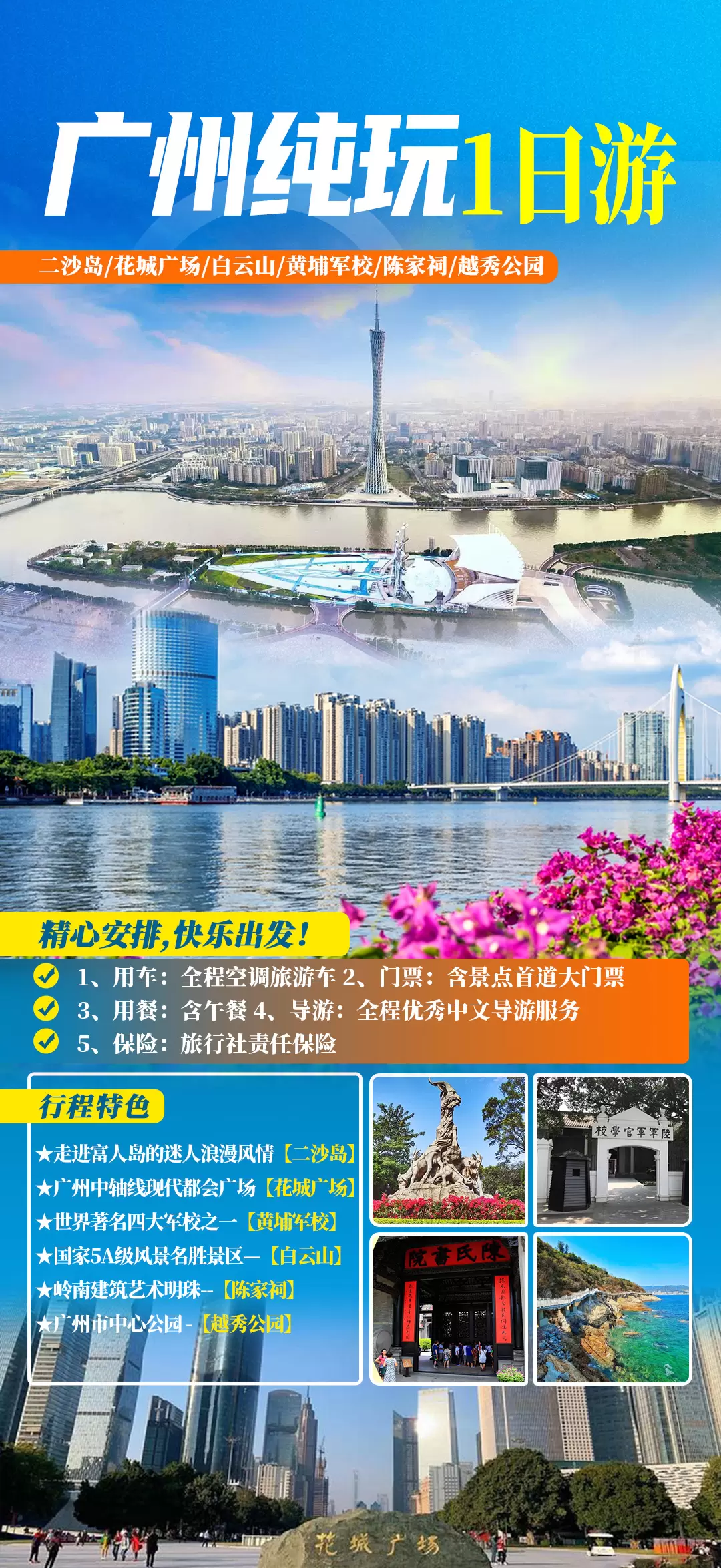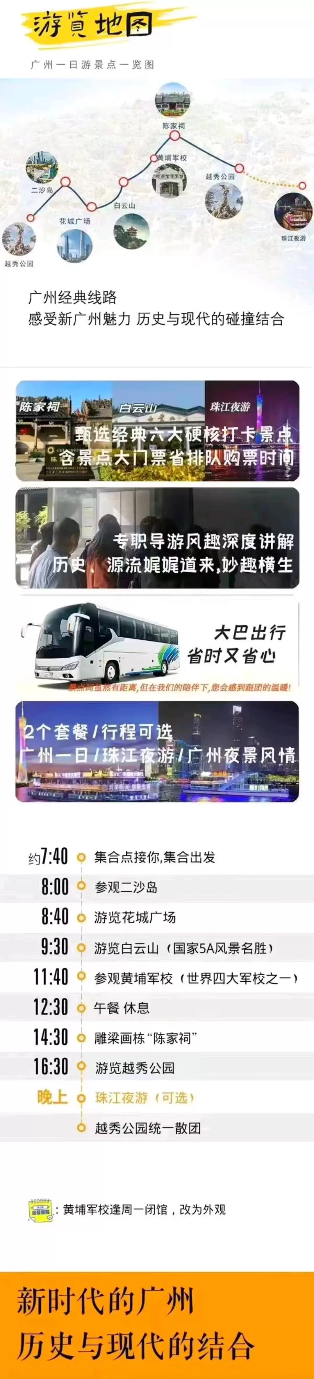 广州二沙岛+花城广场+白云山+陈家祠+越秀公园+黄埔军校旧址纪念馆一日游【天天发团、纯玩零购物、含午餐】
