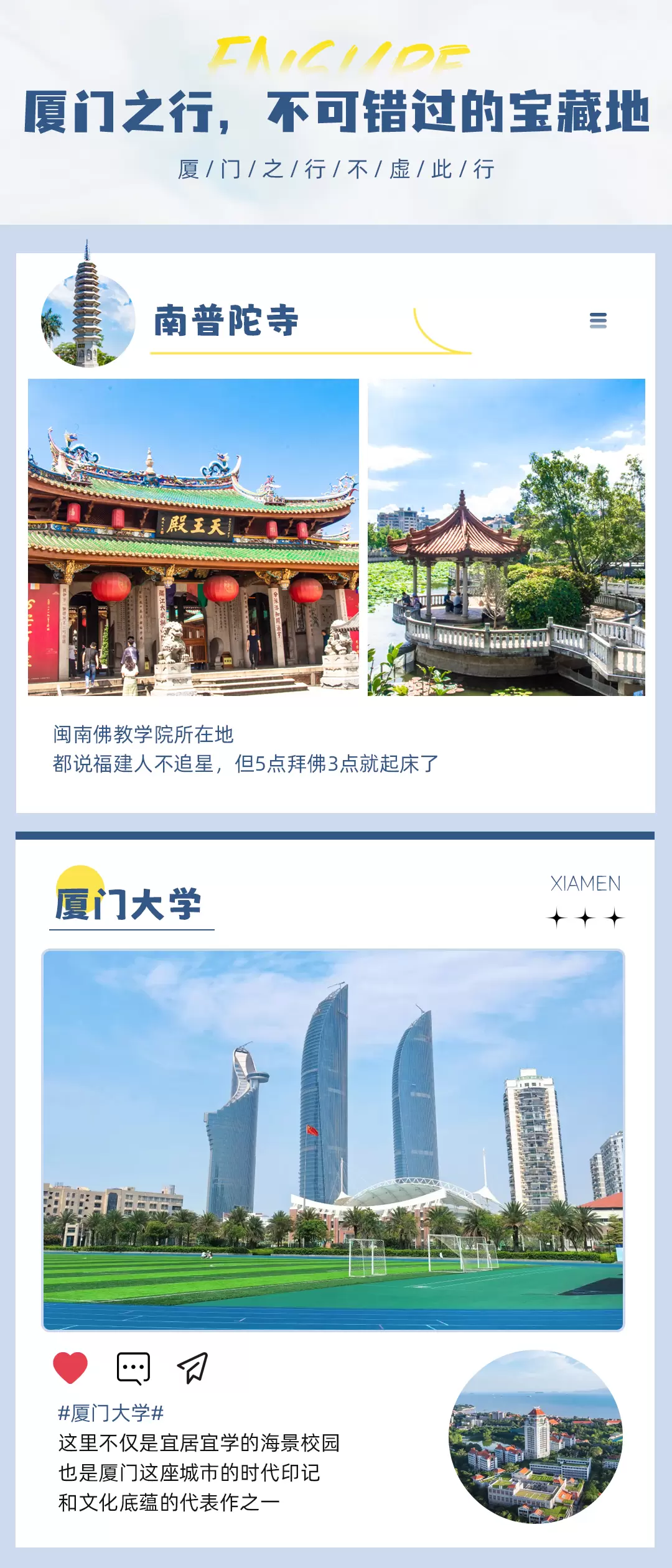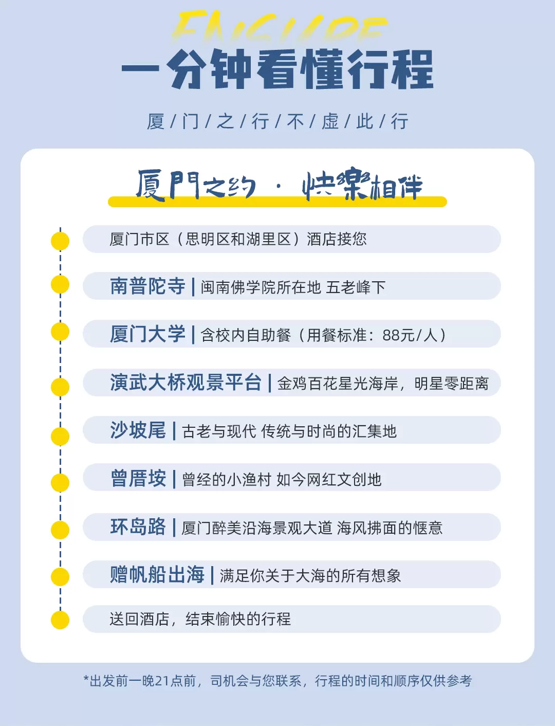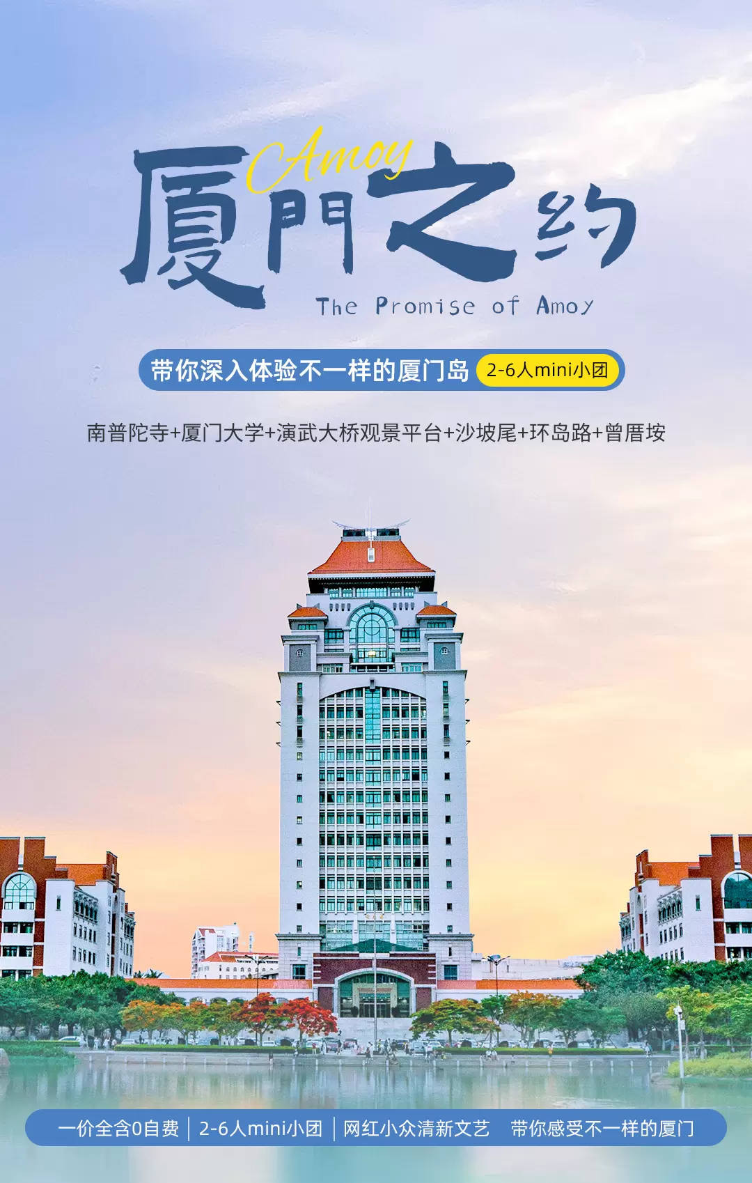 厦门大学(思明校区)+南普陀寺+沙坡尾+曾厝垵+演武大桥观景平台+环岛路+五缘湾帆船港一日游【赠自助餐+帆船】
