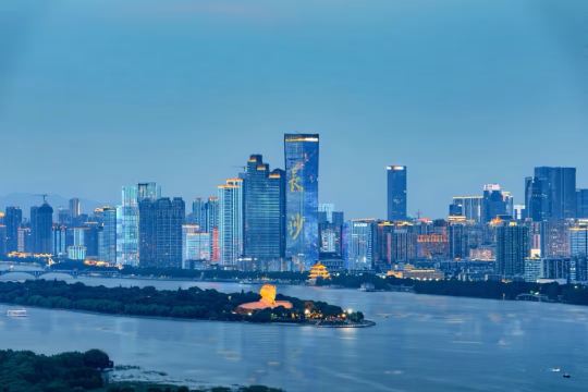 ▲ 橘子洲,是湘江中的一个冲击沙洲,自古就是长沙城的名胜之一。春天有江鸥在这里翱翔,夏、秋两季林木葱茏,冬天这里有著名的“江天暮雪”的景致。