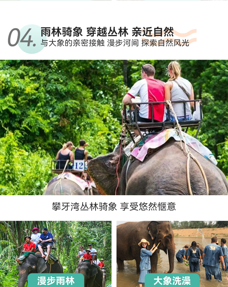 普吉岛攀牙湾白水漂流一日游【骑大象/ATV/丛林飞跃/丛林漫步看瀑布 酒店接送 含午餐】