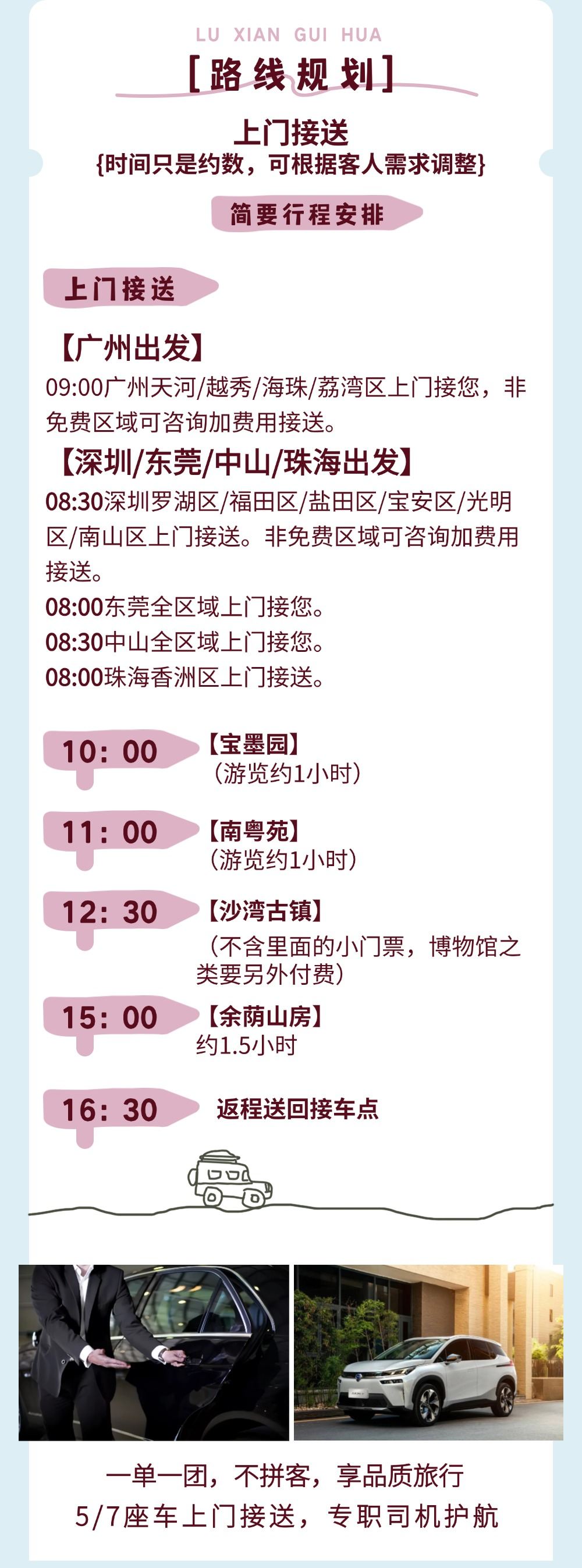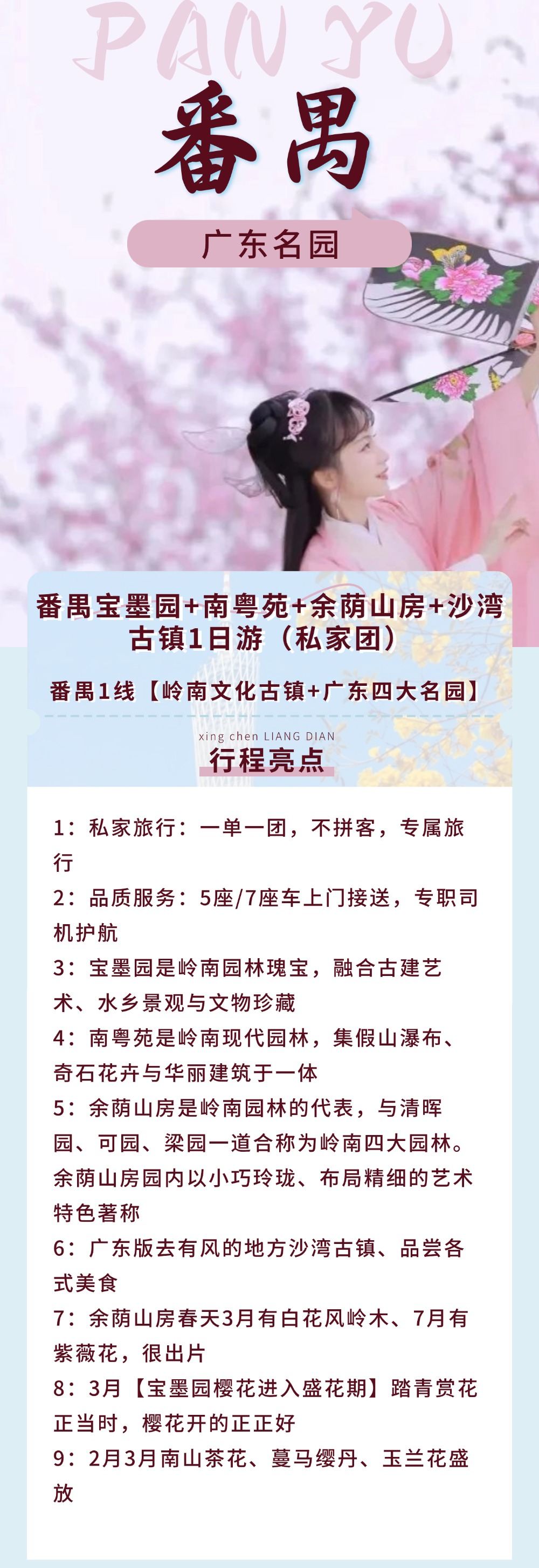 私家团上门接送+宝墨园+南粤苑樱花+余荫山房+沙湾古镇一日游【私家旅行:一单一团,不拼客,专属旅行 品质服务:车上门接送,专职司机护航】