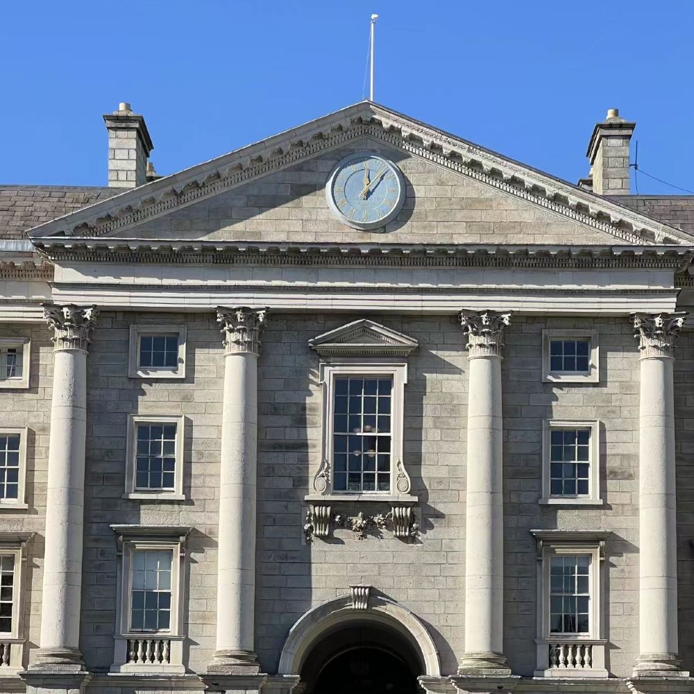 ▲ 始建于1592年。校园内有大片草坪、鹅卵石道路与古老石砌建筑,充满庄严与古典气息。其老图书馆内收藏有超过20万册古老的手稿,其中包括公元800年前后由凯尔特修士手抄的拉丁文《四福音书》——《凯尔斯书》