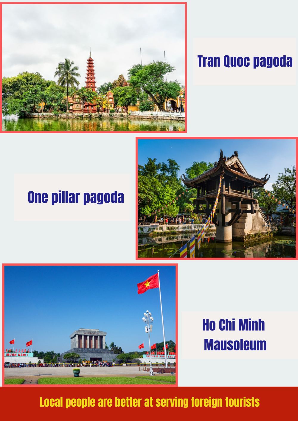 9:00: 参观胡志明伯伯遗迹区Ho Chi Minh mausoleum:胡志明伯伯陵墓,参观胡志明伯伯办公以及生活的住宅、一柱庙 One Pillar pagoda。