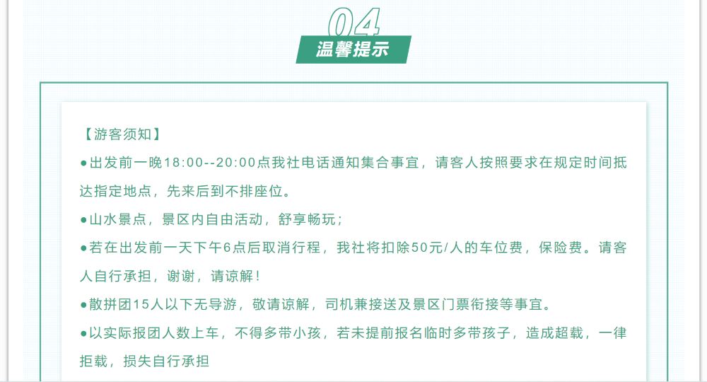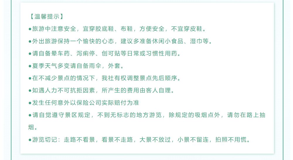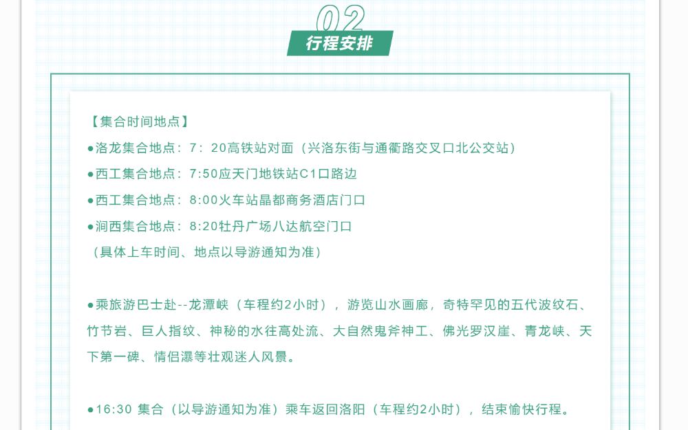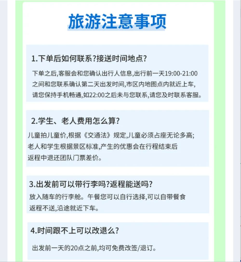 行程所列集合点时间均为参考时间,出行当天会因路况天气等因素适当调整,具体以导游通知为准,建议提前5-10分钟到集合点(4个集合点选择就近集合上车)