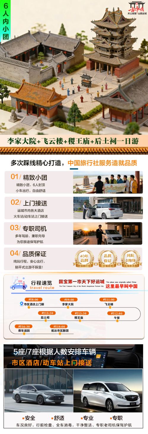 【小团】李家大院+飞云楼+后土祠+稷王庙一日游【精致小团,灵活自由,专职司机兼职向导。】