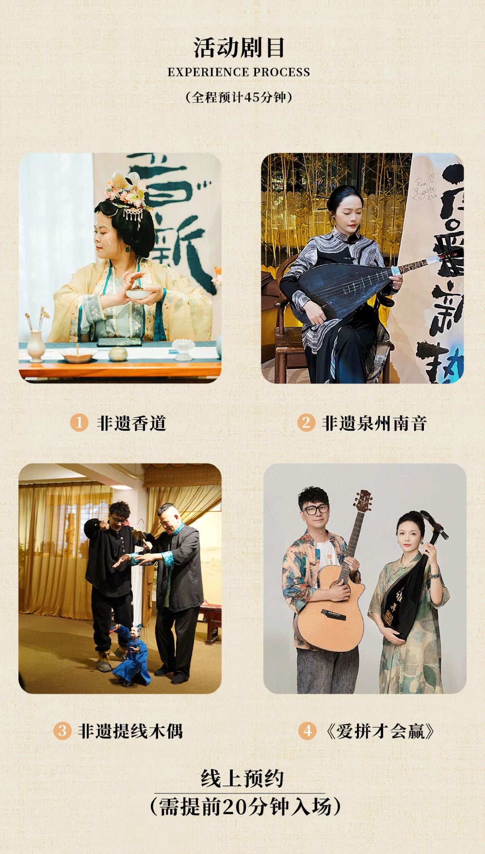 非遗木偶戏南音表演【提线木偶操控・南音打击乐・香道演示】【非遗大师亲献艺:省级传承人 + 南音状元五代传人驻场,提线木偶、创新南音等,让您直触正宗泉州非遗魅力】
