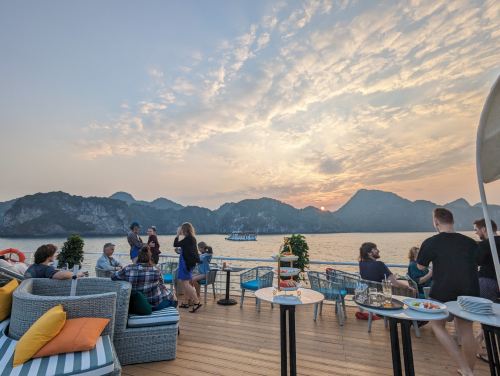 1个6:45返回贝奥码头,向……道别兰哈湾和宁静宏伟游轮团队一起,乘车返回吉婆镇、海防市或河内。