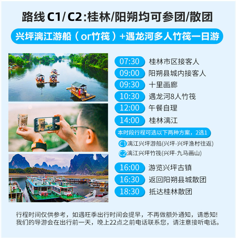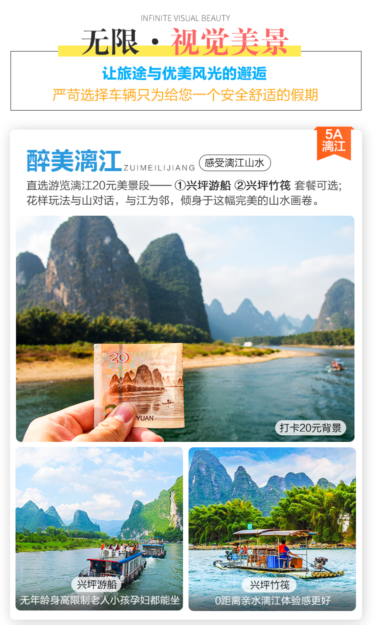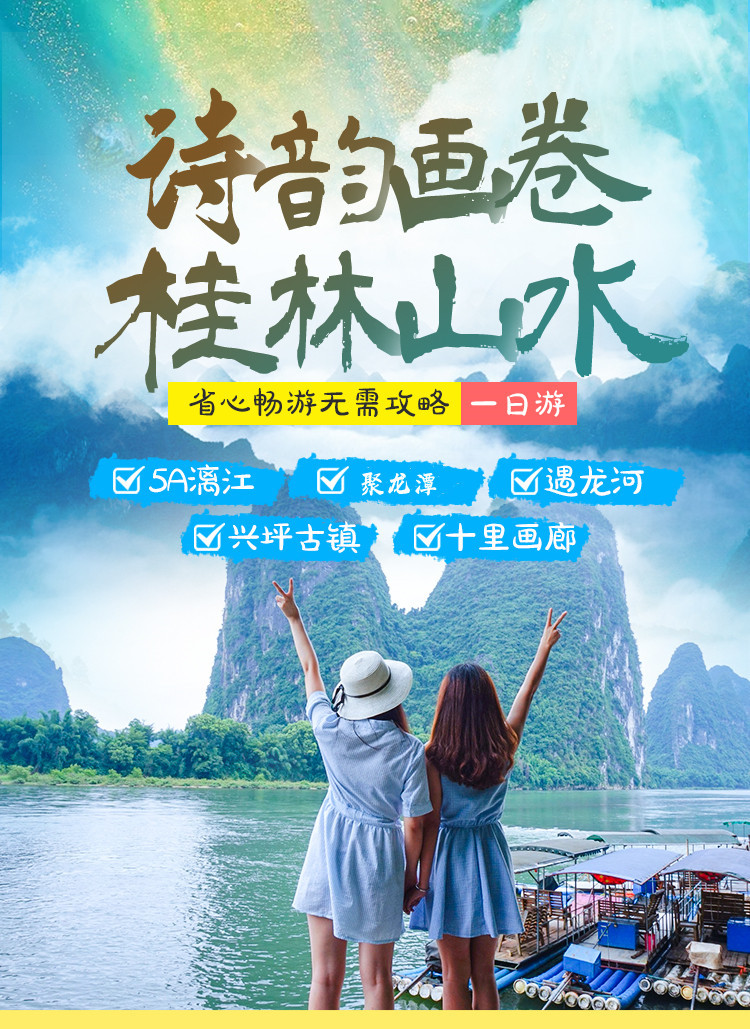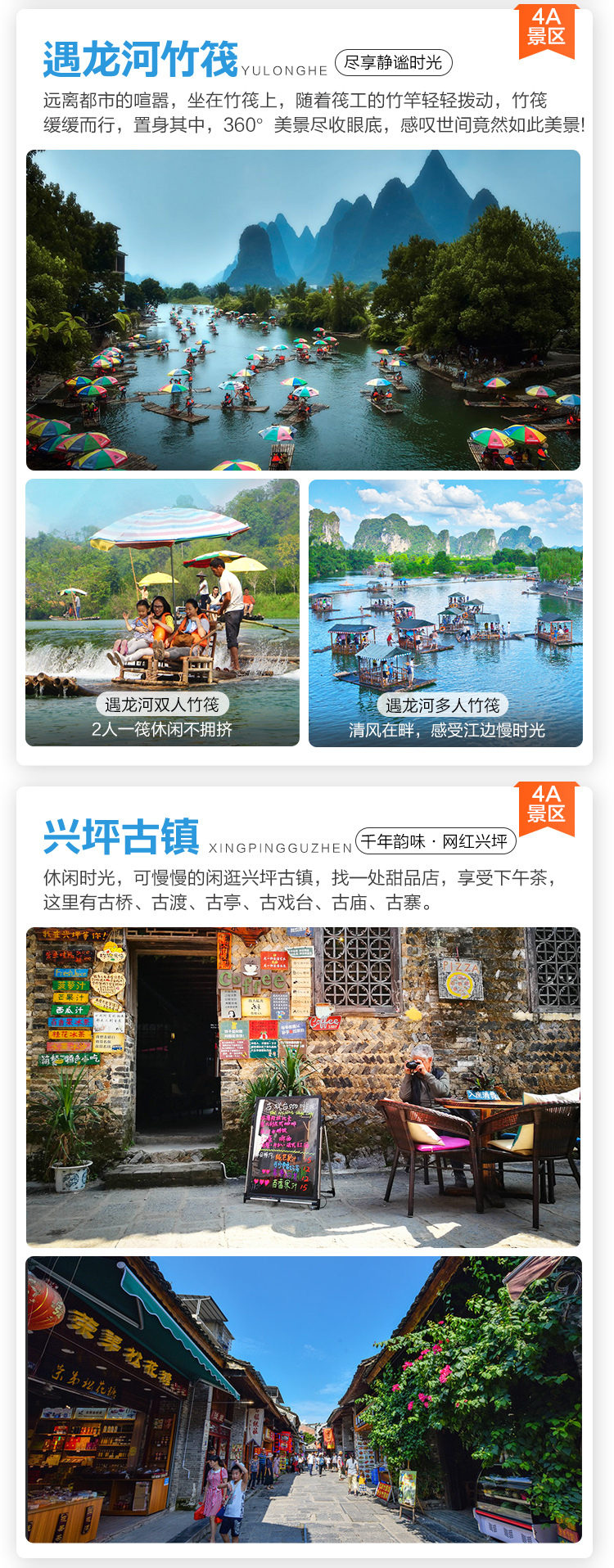 桂林漓江风景名胜区+桂林遇龙河漂流+桂林漓江精华游+桂林兴坪古镇一日游【纯玩·晚出发 竹筏、三星/四星船可选】