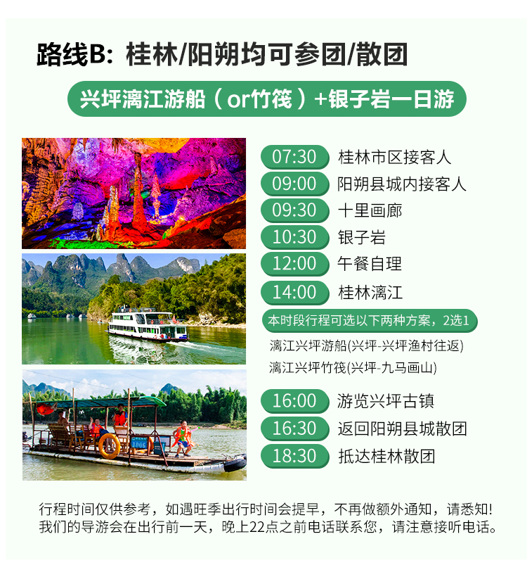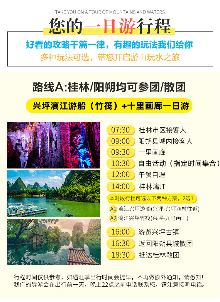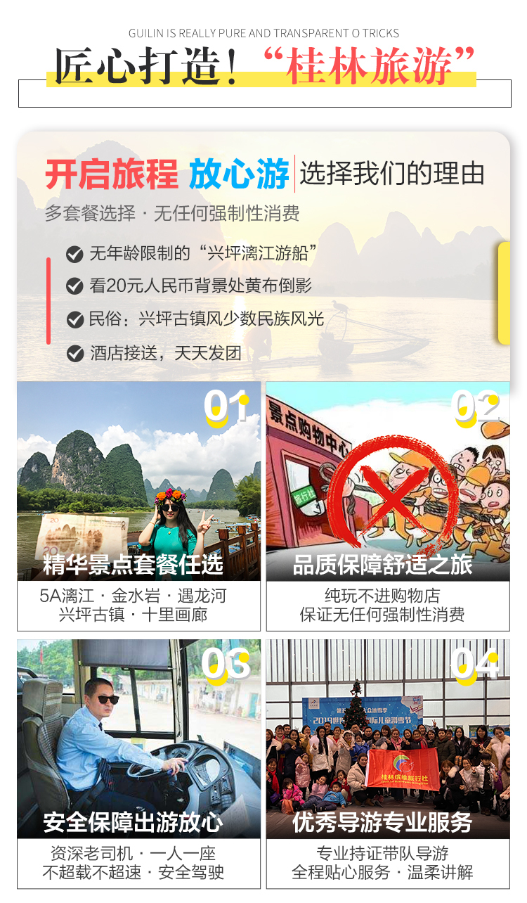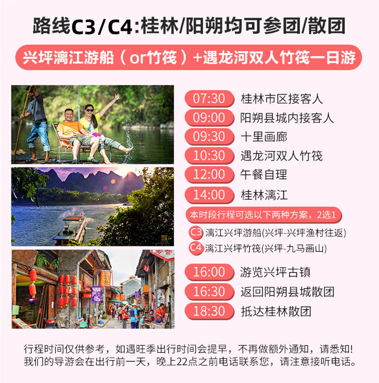 桂林漓江风景名胜区+桂林遇龙河漂流+桂林漓江精华游+桂林兴坪古镇一日游【纯玩·晚出发 竹筏、三星/四星船可选】