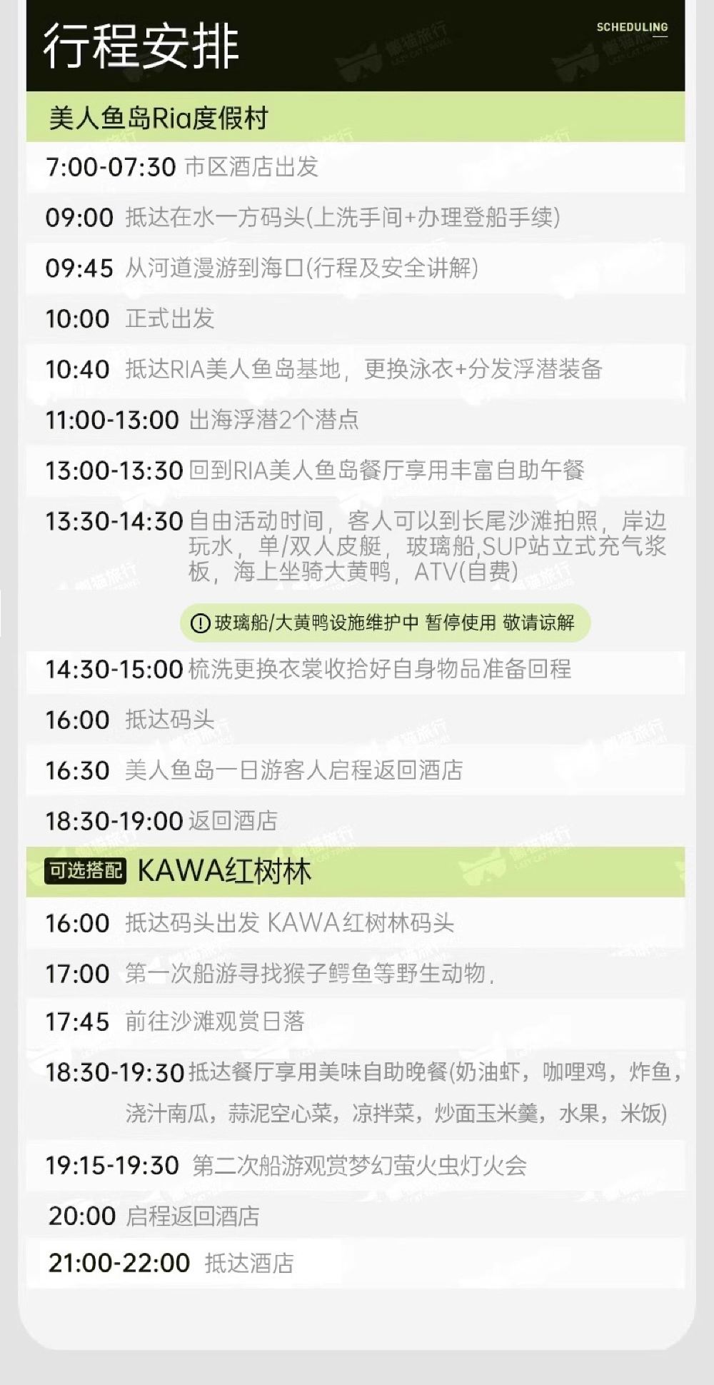 美人鱼岛路途遥远,60岁以上的旅客如需预订,请先咨询客服