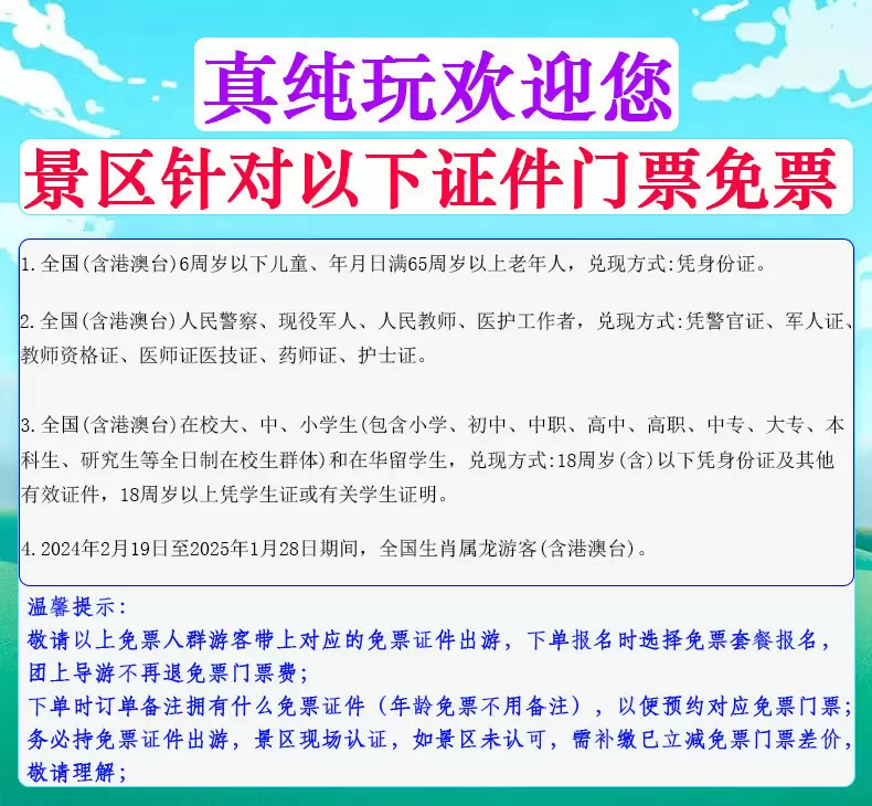 由于水帘洞当天预约上限为1.1万人,水帘洞不保证预约成功, 如果有想去水帘洞的游客建议自己预约更保险,水帘洞必须是买了门票后才能预约,所以无论你有没有免票证件,都报页面免票套餐,如果有免票就自己去一码游注册免票,然后预约;如果没有免票,就直接买门票,买完门票后会弹出来让你预约水帘洞