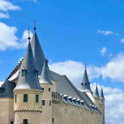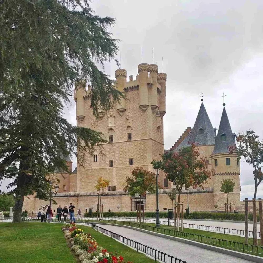 ▲ 塞哥维亚城堡是塞戈维亚一座造型独特的石砌城堡,三面悬崖,只有通过吊桥才可进入。这座城堡开始只是一个堡垒,后被用作王宫、监狱和军事学院。蓝色的屋顶和城堡造型非常梦幻,相传是迪斯尼“白雪公主城堡”的原型。 城堡从远处看上去犹如一艘航行于克拉莫行德莱斯河(Rios Clamores)和莱代斯马河(Ledesma)之间的轮船,高耸的塔楼便是船帆,登上塔楼即可一览全塞戈维亚城和周边的田野风光。
