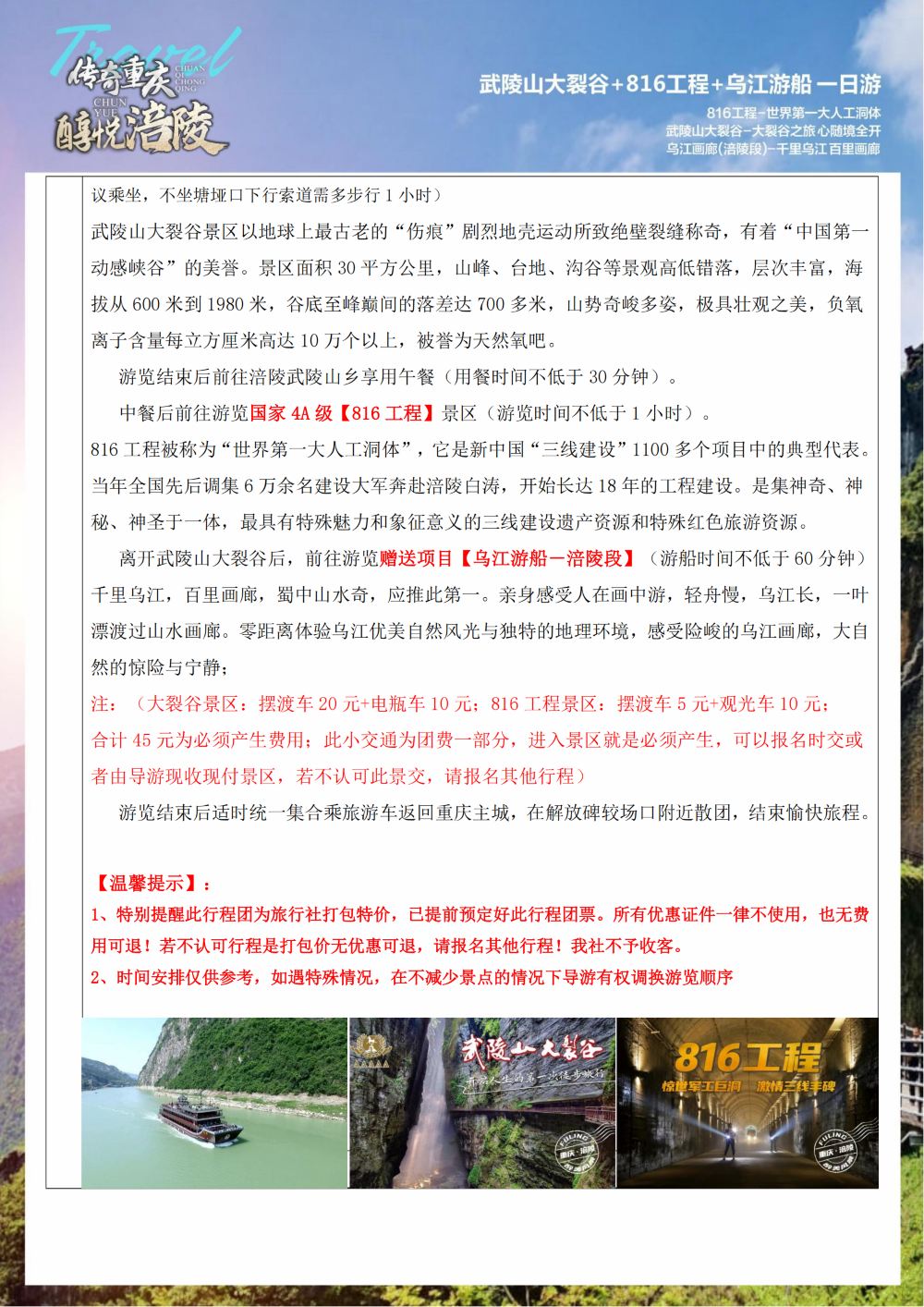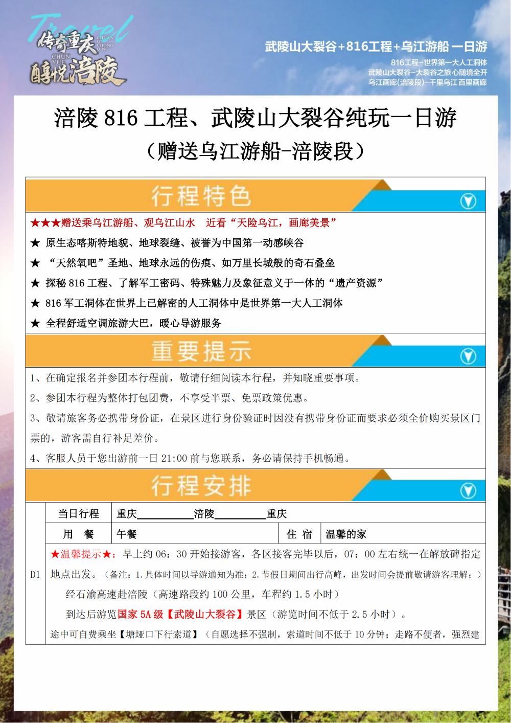 涪陵 816 工程+武陵山大裂谷纯玩一日游 赠送乌江画廊游船【赠送乘乌江游船、观乌江山水 近看“天险乌江,画廊美景”】