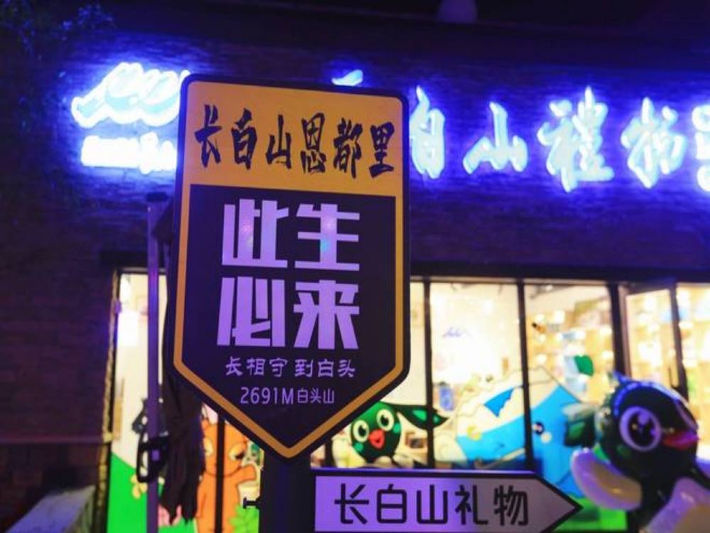 ▲ 长白山新地标-“恩都里”,集度假餐饮、休闲演艺、文娱文创业态为一体的长白山度假集群,这里有非常多的文创店、咖啡店、画展、服装店等,晚上灯亮起来,夜景也是不错的。这里把大山的灵气和市井的热闹全揉进了一条街。白天在山脚下悠悠漫步.