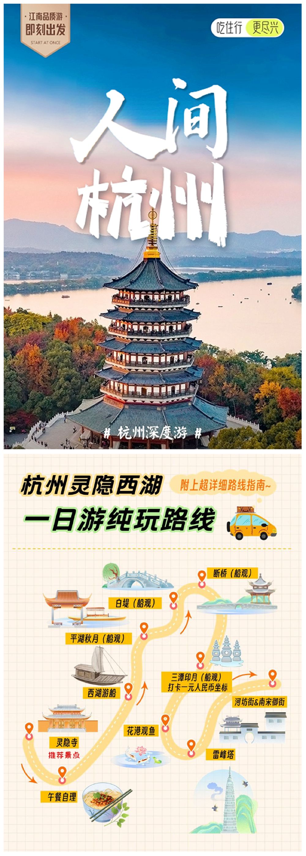 西湖风景名胜区+西湖游船+雷峰塔人工讲解纯玩半日游丨主城区接【甄选行程:西湖热门IP半日轻盈游『西湖风景名胜区』ღ『西湖游船』ღ『雷峰塔』ღ『清河坊街』】