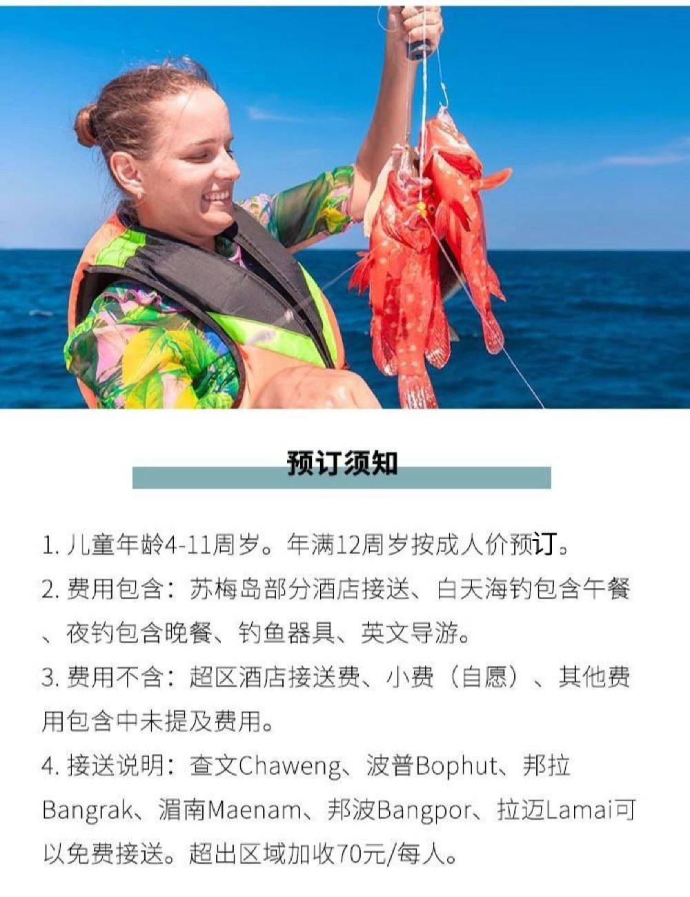 苏梅岛北部海钓一日游【专业渔船丨出海钓鱼丨海钓体验】【[酒店接送]部分区域可接送,车送车回出行无忧!】