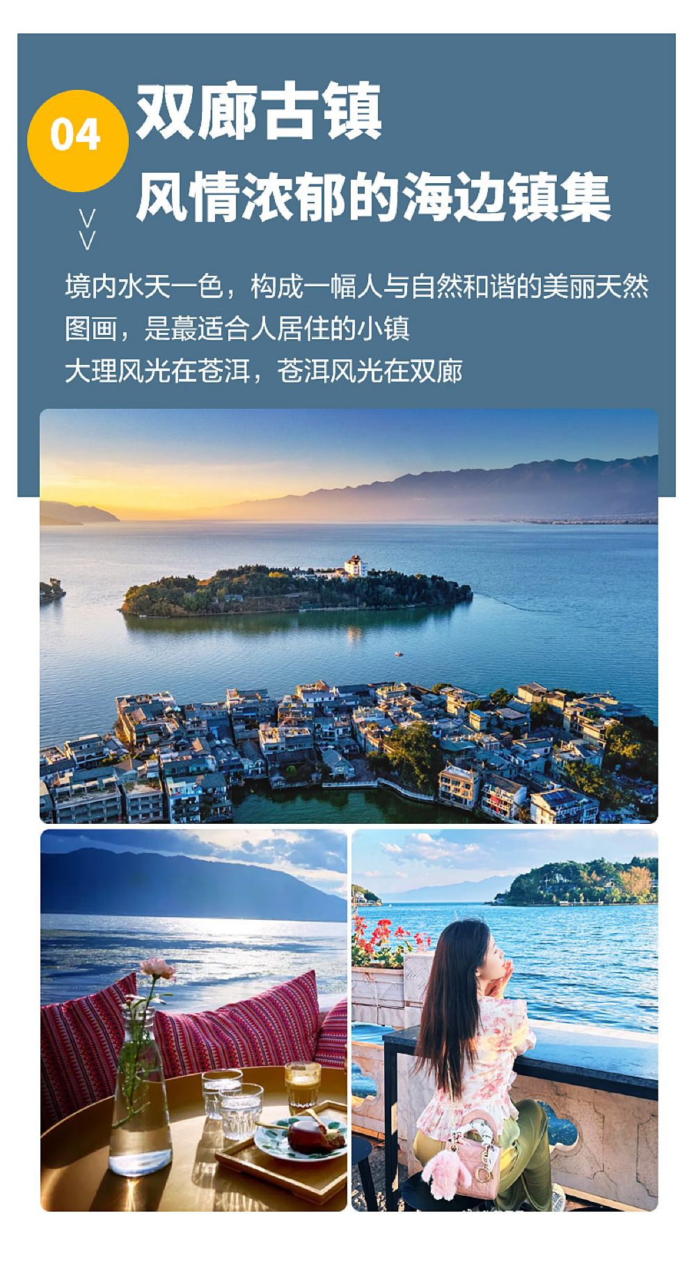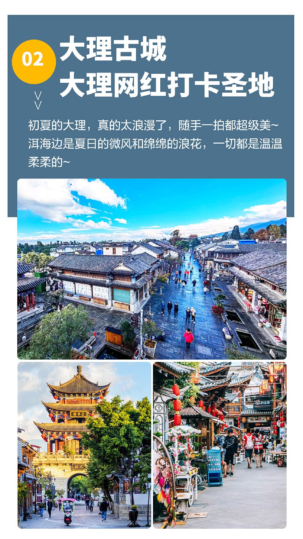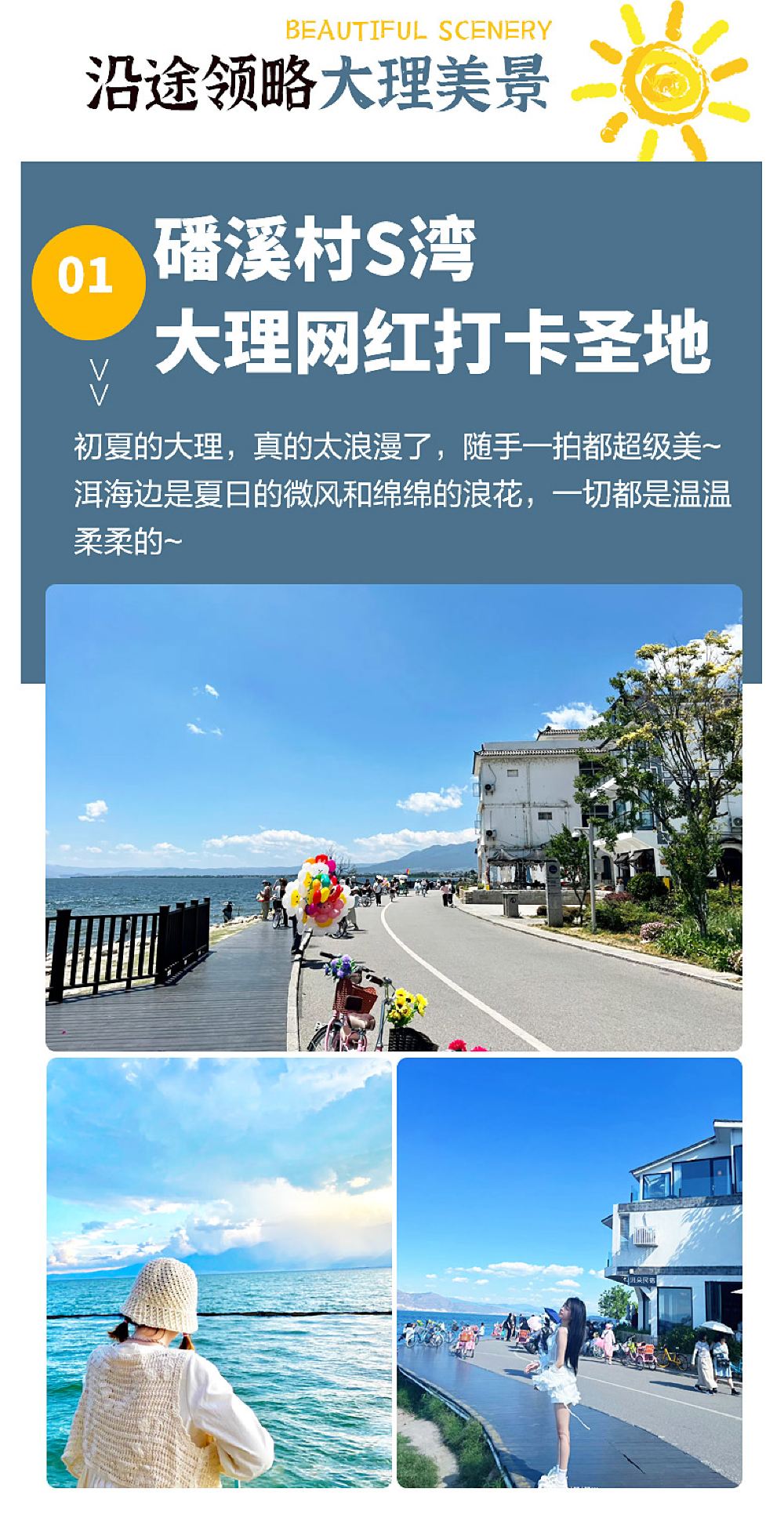 它把洱海边上那些特别有名的景点都串了起来,让你在湖光山色里感受大理的浪漫。