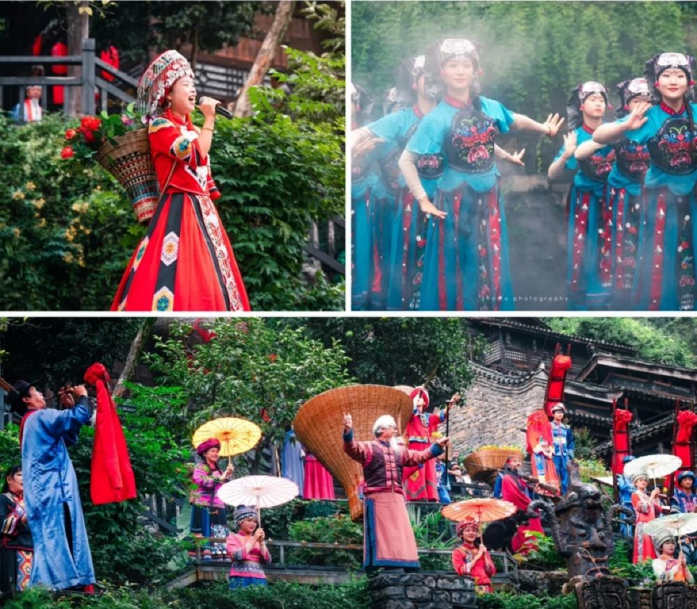 - 10:30 现场导览, 三峡人家, 游龙进溪、观三峡野生猕猴,蛤蟆泉、水上人家、溪边人家、黄龙瀑、琴鹰瀑,观看【土家婚嫁互动表演】——哭嫁,做一回土家新郎,地道的峡州人民歌曲表演让您领略巴人部落的别样风情。