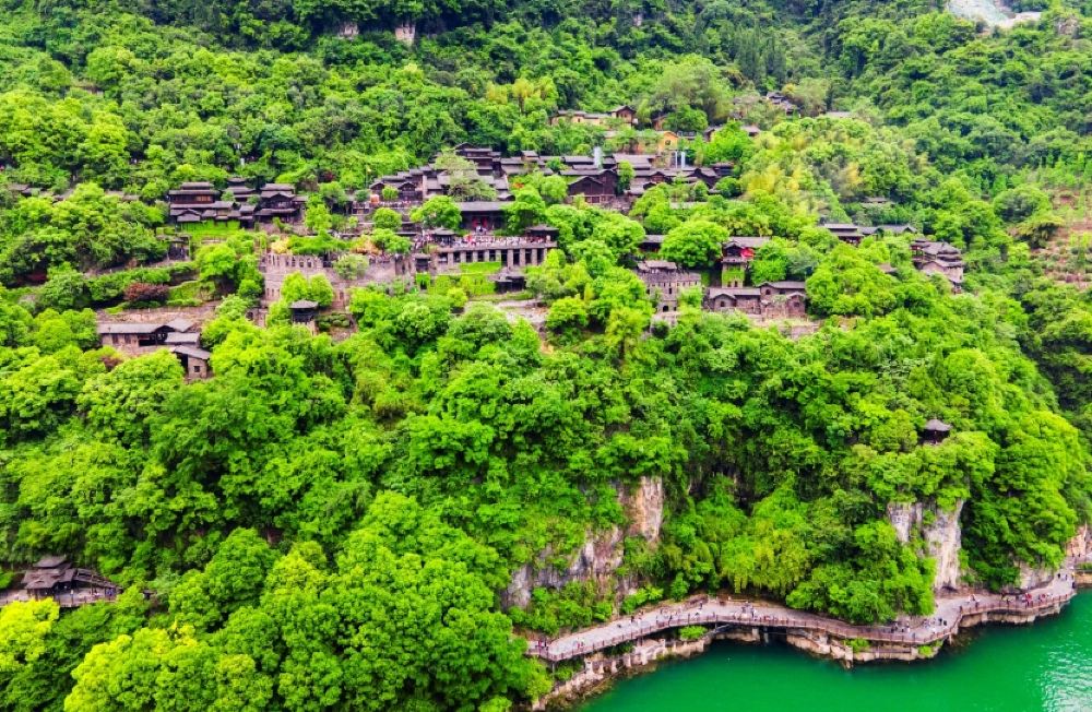 三峡人家,依山傍水,风情如画:传统的三峡吊脚楼点缀于山水之间