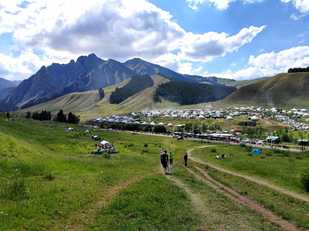一进沟谷,只见蓝天下群山峻峭牛羊成群,密林绿野,溪流淙淙。云杉掩映下,毡房点点,小楼座座,风光如画。游人可在哈萨克牧民的毡房中作客,喝一碗喷香的奶茶,尝一尝“包尔萨克”(油炸点心),穿各种样式哈萨克民族服装照相,尽情领略哈萨克人的习俗风情 (哈萨克家访)。在牧场上,密林中可观赏如画的美景或租上一匹哈萨克牧民的骏马驰骋在广阔的草原,或穿行于密林深处。