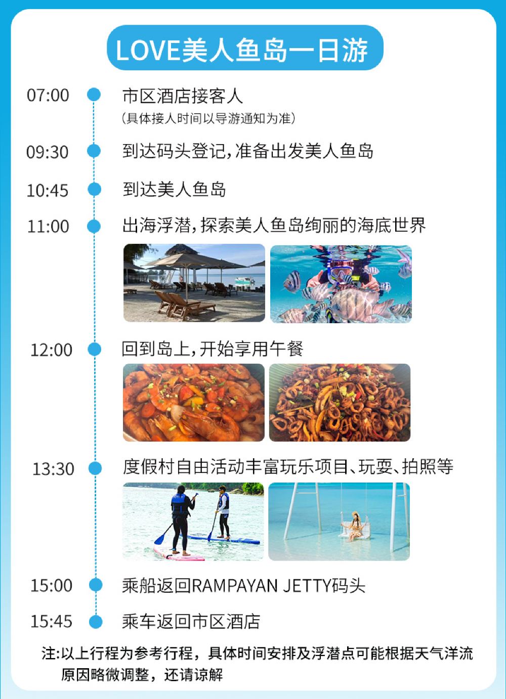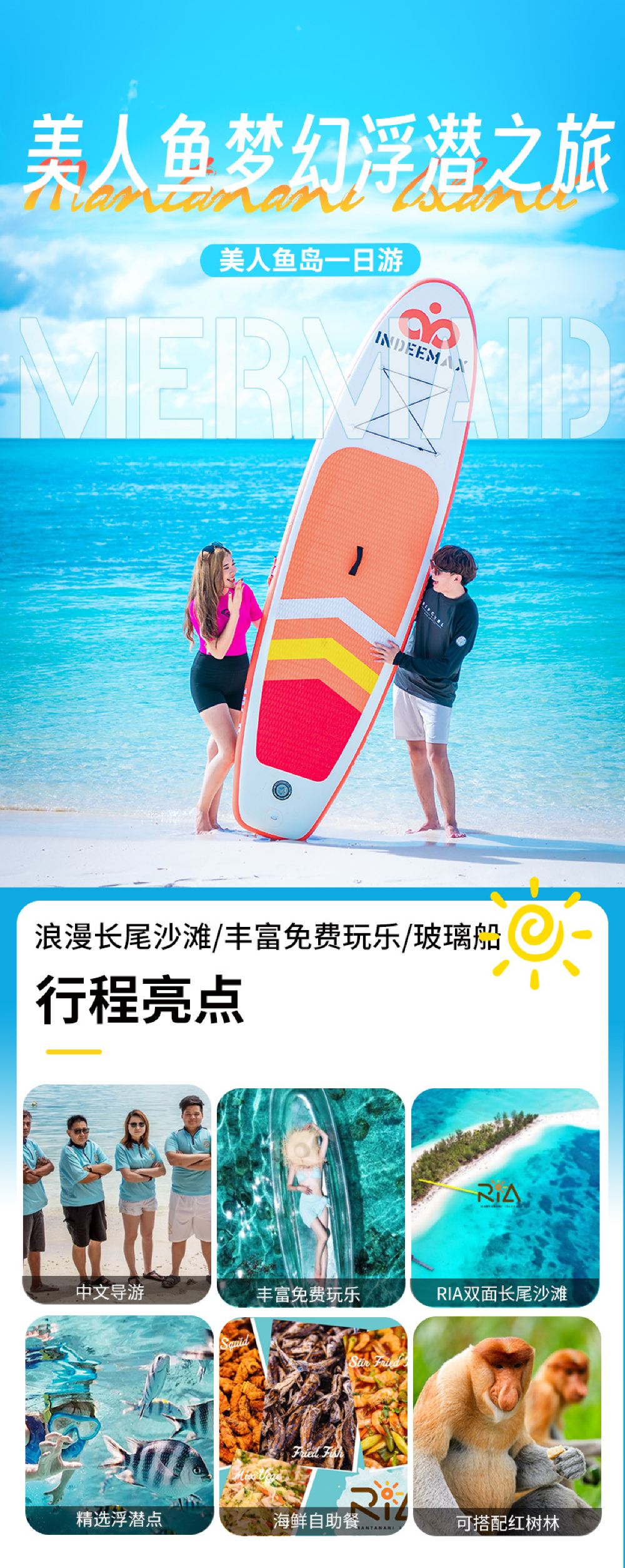 马来西亚沙巴哥打京那巴鲁美人鱼岛一日游浮潜深潜 可+红树林【登陆度假村私家海滩,享受人少静谧的美人鱼岛原生态景色】