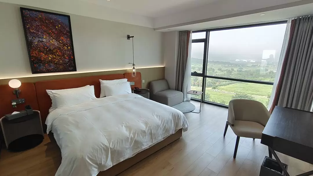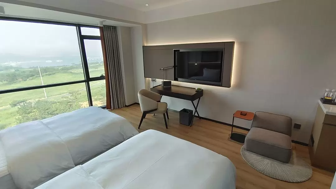 山庄拥有三百余间客房,房内配有43寸液晶电视;让眼睛更享受,更换零压力舒适床垫,缓解您一天的疲劳;整套淋浴设施,多种选择多种享受洗去一天的疲劳。客房房间明亮、舒适宽敞,内设24小时热水、电热水壶、独立淋浴间等设备,服务热情周到。